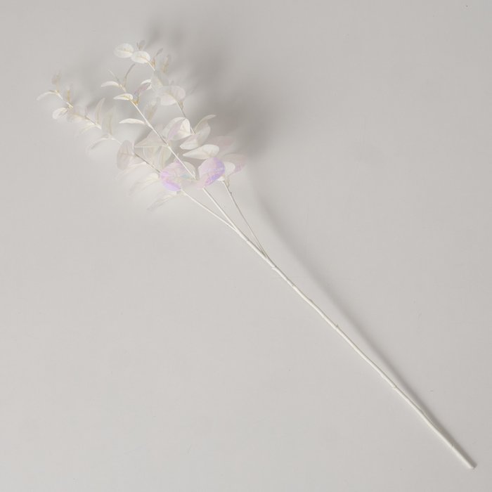 Weißer Dekozweig mit irisierendem Glanzeffekt – beeindruckendes Lichtspiel.