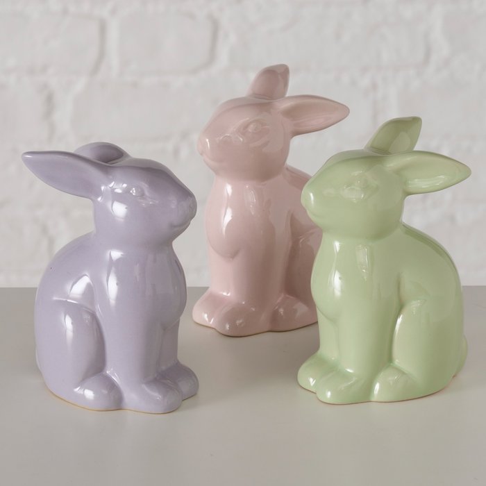 Hase Dekofigur aus Porzellan in rosa, lila oder grün 11cm von Boltze