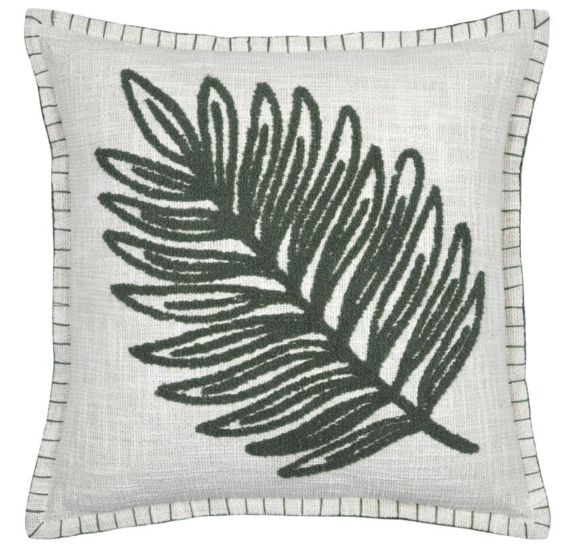 Die Hülle aus reiner Baumwolle fühlt sich angenehm natürlich an und überzeugt durch ihre hochwertige Verarbeitung. Auf der Vorderseite ist das Monstera-Blatt aufwendig getuftet und hebt sich plastisch vom strukturierten Gewebe in Beige ab. Feine silberfarbige Glanzakzente sorgen für eine edle, zurückhaltende Eleganz.