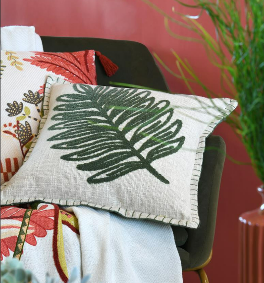 Dekokissen mit getuftetem Monstera-Blatt aus reiner Baumwolle