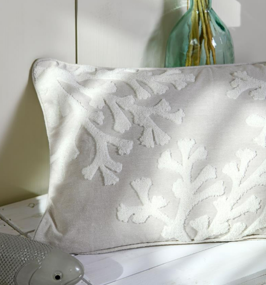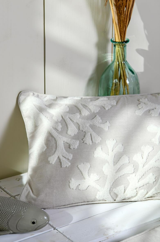 Exklusiver Küsten-Look: Das Dekokissen im Format 40x60 cm bringt mit seinem reliefartigen Korallen-Motiv maritimes Flair und zeitlose Eleganz in dein Zuhause.