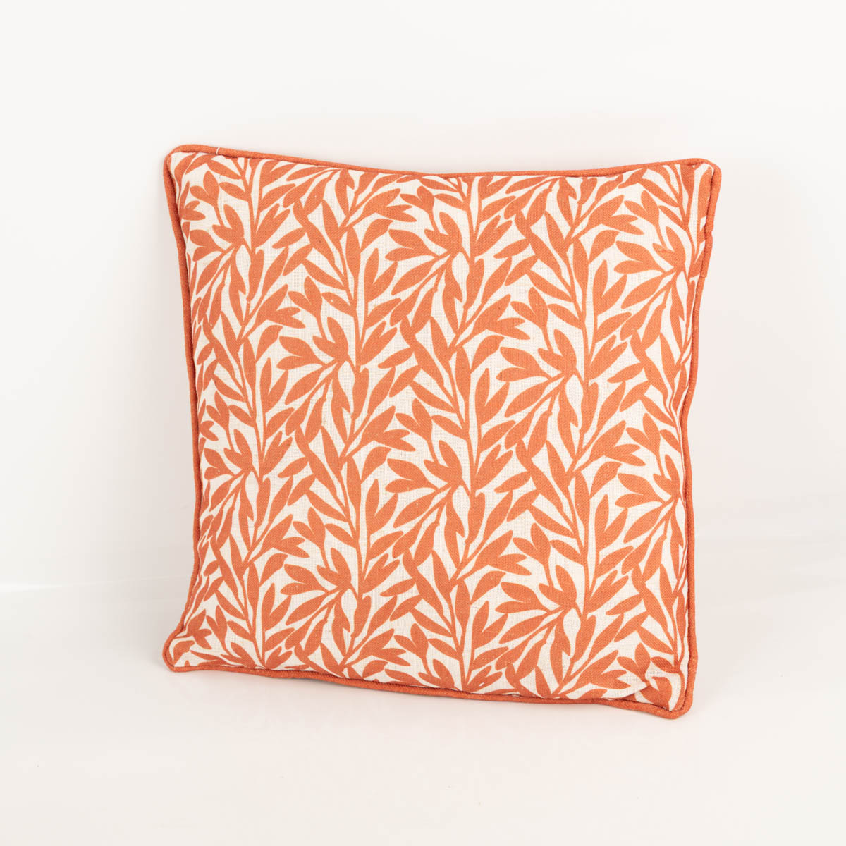 Dekokissen Blätter Leinenstruktur mit Kederumrandung weiß orange 40x40cm