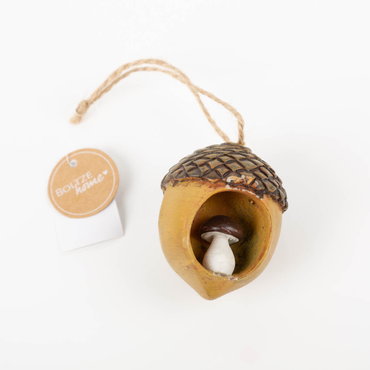 Mit dem Anhänger Eichel mit Pilz holst du dir ein Stück Natur direkt in dein Zuhause. Der detailreiche Anhänger aus Kunstharz zeigt eine Eichel mit kleiner Pilzfigur im Inneren – ein liebevolles Motiv, das sofort herbstliche Stimmung verbreitet.