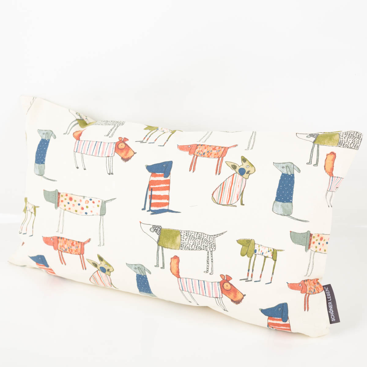 Kissenhülle aus Baumwolle mit Hunden beige bunt in versch. Größen von SCHÖNER LEBEN.