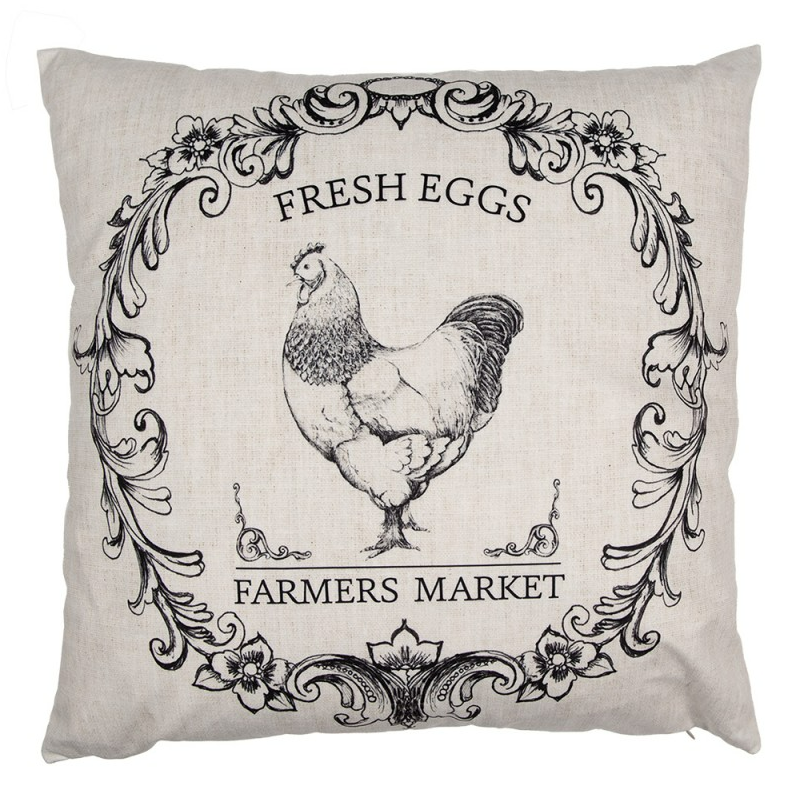 Kissenhülle Vintage Hahn Farmers Market beige schwarz 45x45cm von Clayre & Eef