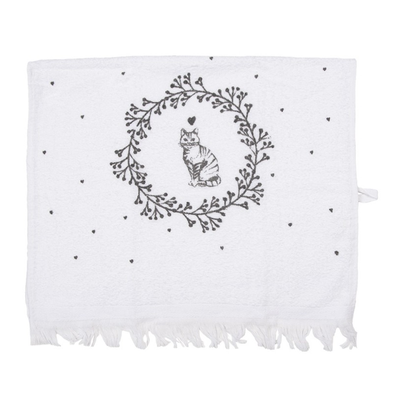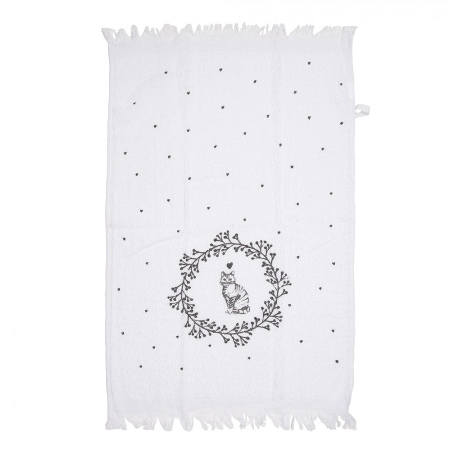 Gästehandtuch von Clayre & Eef in Weiß und Schwarz mit liebevollem Katzenmotiv, ideal für Badezimmer, Gäste-WC oder Küche