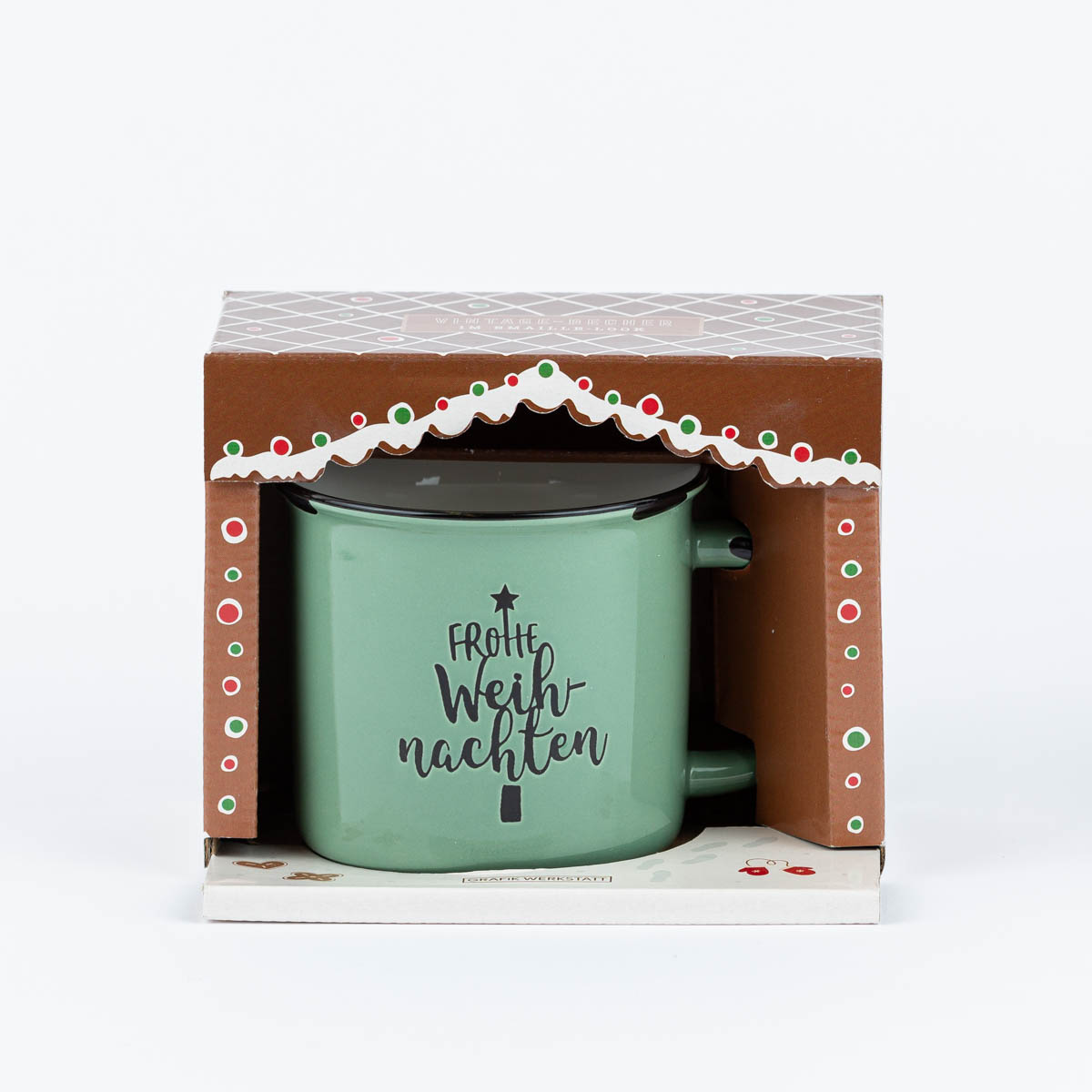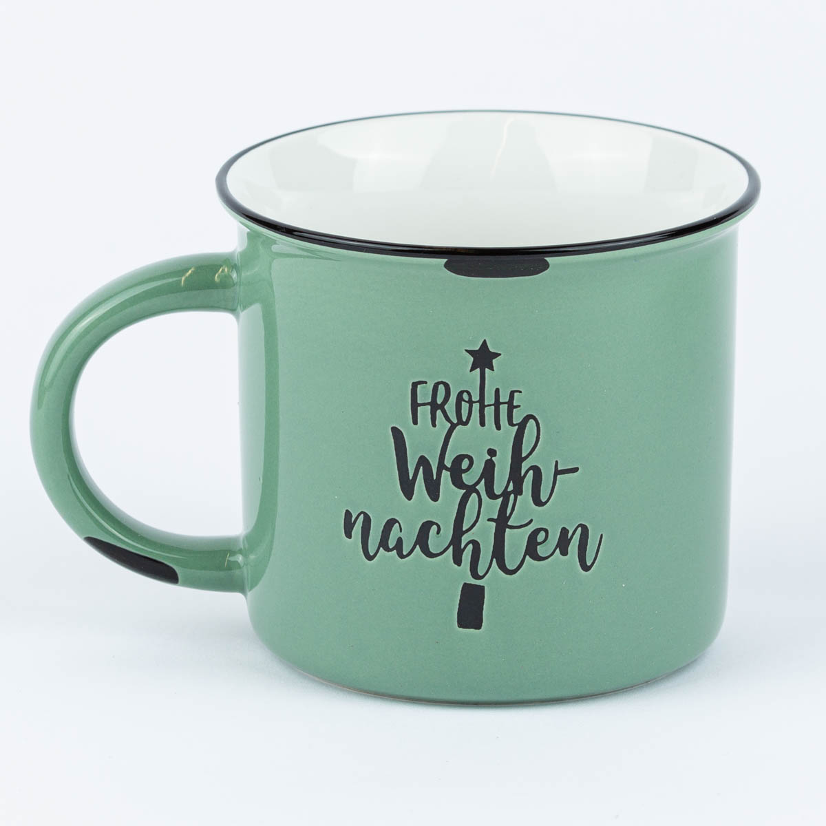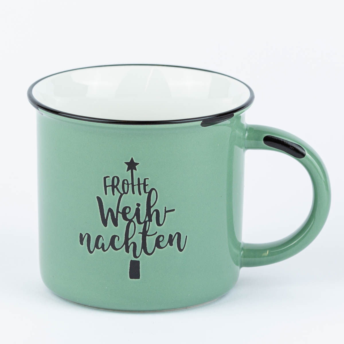 Grafik Werkstatt Tasse Vintage Weihnachten Frohe Weihnachten grün schwarz weiß 400ml