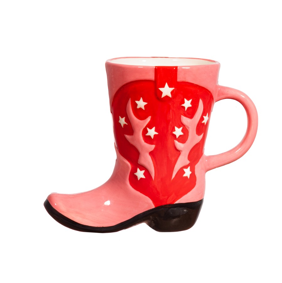 Tasse Cowboy Stiefel 280ml Dolomit handbemalt rosa rot von Sass & Belle
