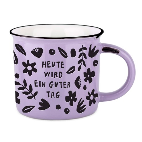 Die Vintage-Tasse „Heute wird ein guter Tag“ von Grafik Werkstatt ist das perfekte Geschenk, um einem besonderen Menschen Danke zu sagen. Der lilafarbige Keramikbecher im Emaille-Look fasst 400 ml und überzeugt mit stabilem Henkel sowie angenehmer Form. Der herzliche Spruch mit kleinem Herz macht jeden Schluck zum Lächeln-Moment.