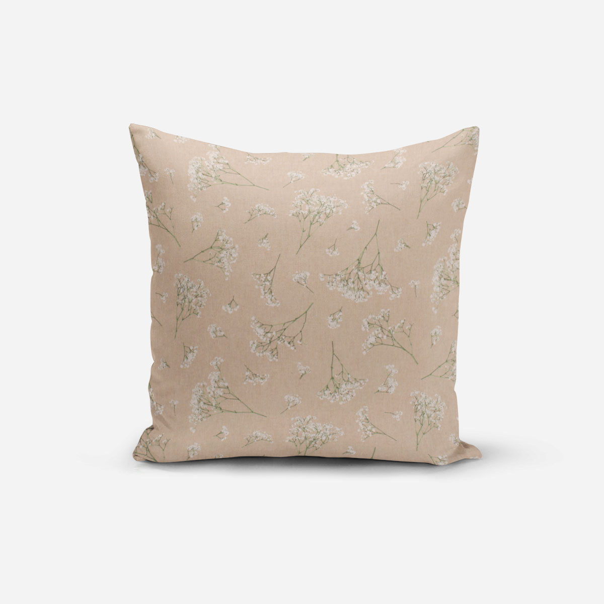 Ein zarter Blütenregen aus kleinen Schleierkrautzweigen ziert die wunderschöne Kissenhülle. Die weißen Blüten bilden einen dezenten Kontrast zum satten Grün der Stiele und kommen auf dem naturfarbenen Untergrund besonders gut zur Geltung. Ob elegant oder frühlingshaft-ländlich - die Kissenhülle kann beides. Sie passt zu vielen modernen Wohntrends und ist auch ein dekorativer Blickfang bei Feiern und Festen.