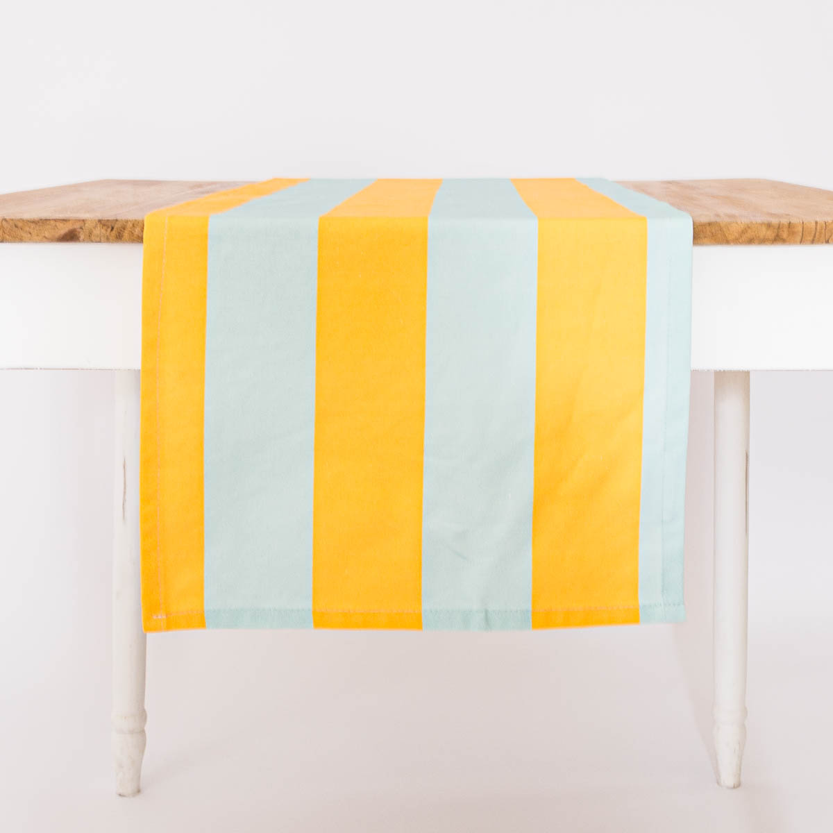 Outdoor Tischläufer Streifen hellblau gelb 40x160cm von SCHÖNER LEBEN.