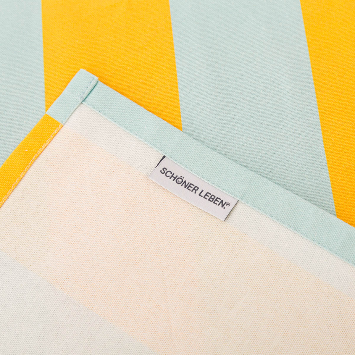 Der wetterfeste Outdoor Tischläufer mit leuchtenden Streifen in Hellblau und Gelb aus unserer SCHÖNER LEBEN. Kollektion ist perfekt für sommerliche Tischdekorationen mit fröhlichem Charme. Das abstrakte Dessin mit Blockstreifen in sommerlichen Farben kommt im Digitaldruck besonders leuchtend und klar zur Geltung und verbreitet sommerliche Vibes.