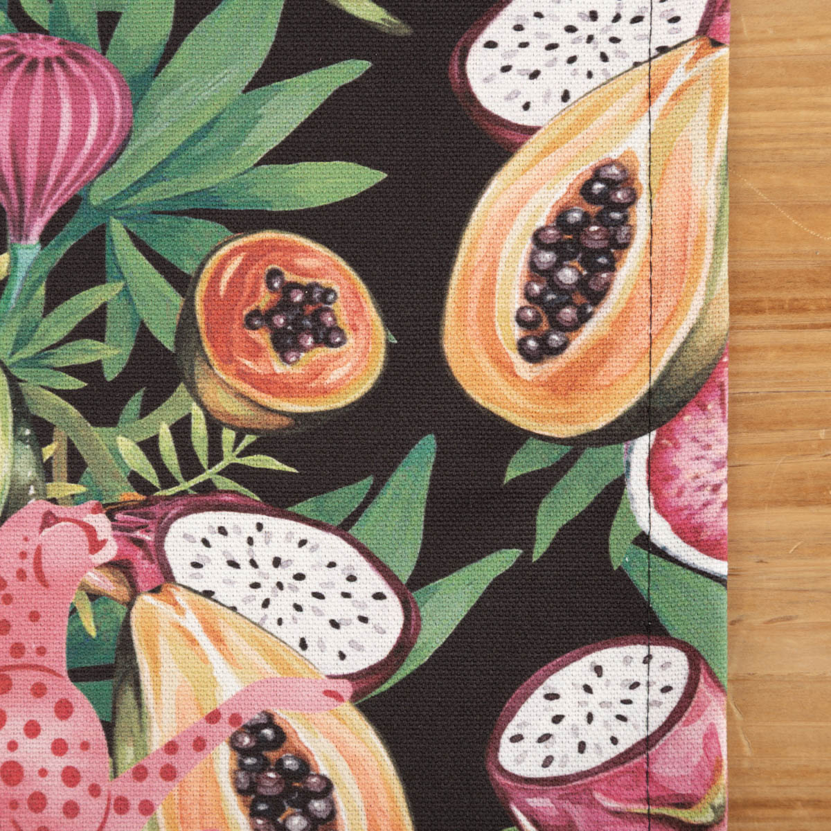 Tischläufer aus Baumwolle Jaguar Früchte schwarz bunt 40x160cm von SCHÖNER LEBEN.