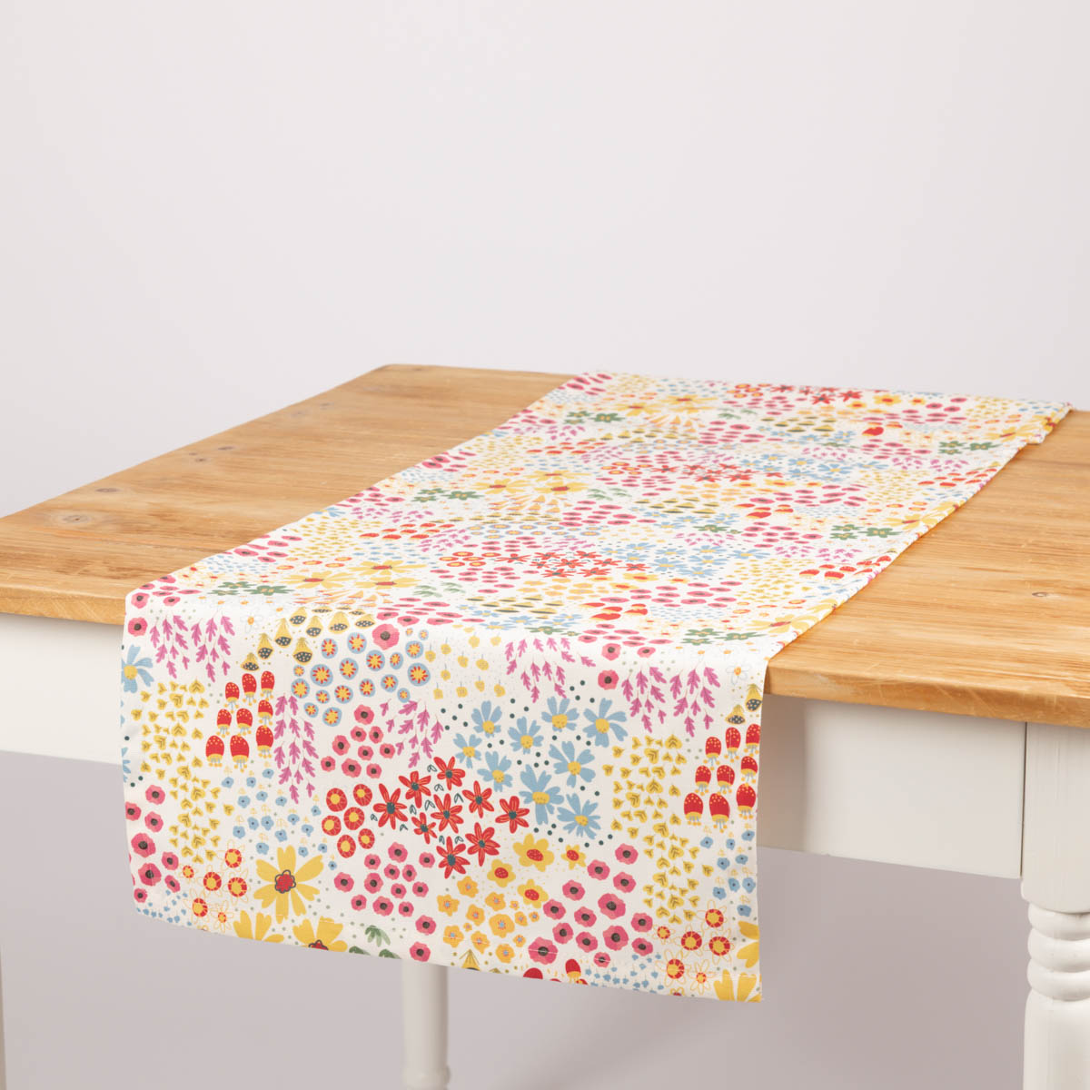 Tischläufer aus Baumwolle mit Mini Blumen weiß bunt 40x160cm von SCHÖNER LEBEN.