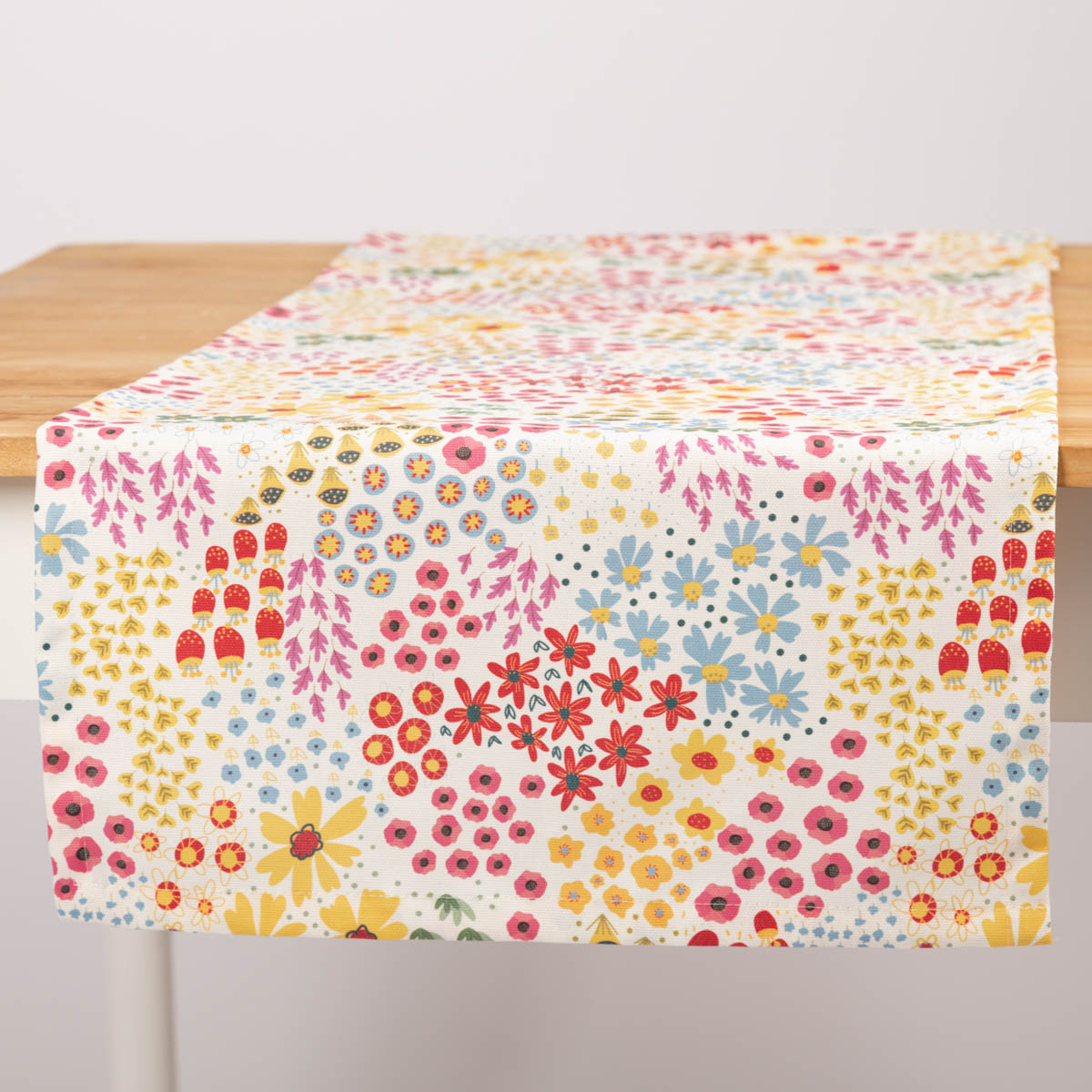 Der Tischläufer mit fröhlichen Mini Blumen aus unserer SCHÖNER LEBEN. Kollektion ist ein toller Hingucker für deinen Tisch. Das wunderschöne Dessin mit kleinen bunten Blumen verleiht dem Tischläufer seinen einzigartigen Charme und macht dein Zuhause noch schöner und gemütlicher. Der Tischläufer aus reiner Baumwolle hat einen natürlichen Charakter und ist aus robustem Halbpanama-Stoff genäht.