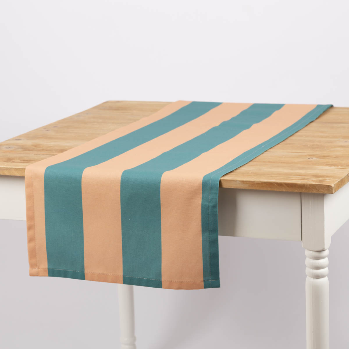 Tischläufer aus Baumwolle mit Streifen in Apricot und Grün (40x160cm) – handgefertigt in Deutschland, Teil der SCHÖNER LEBEN. Kollektion