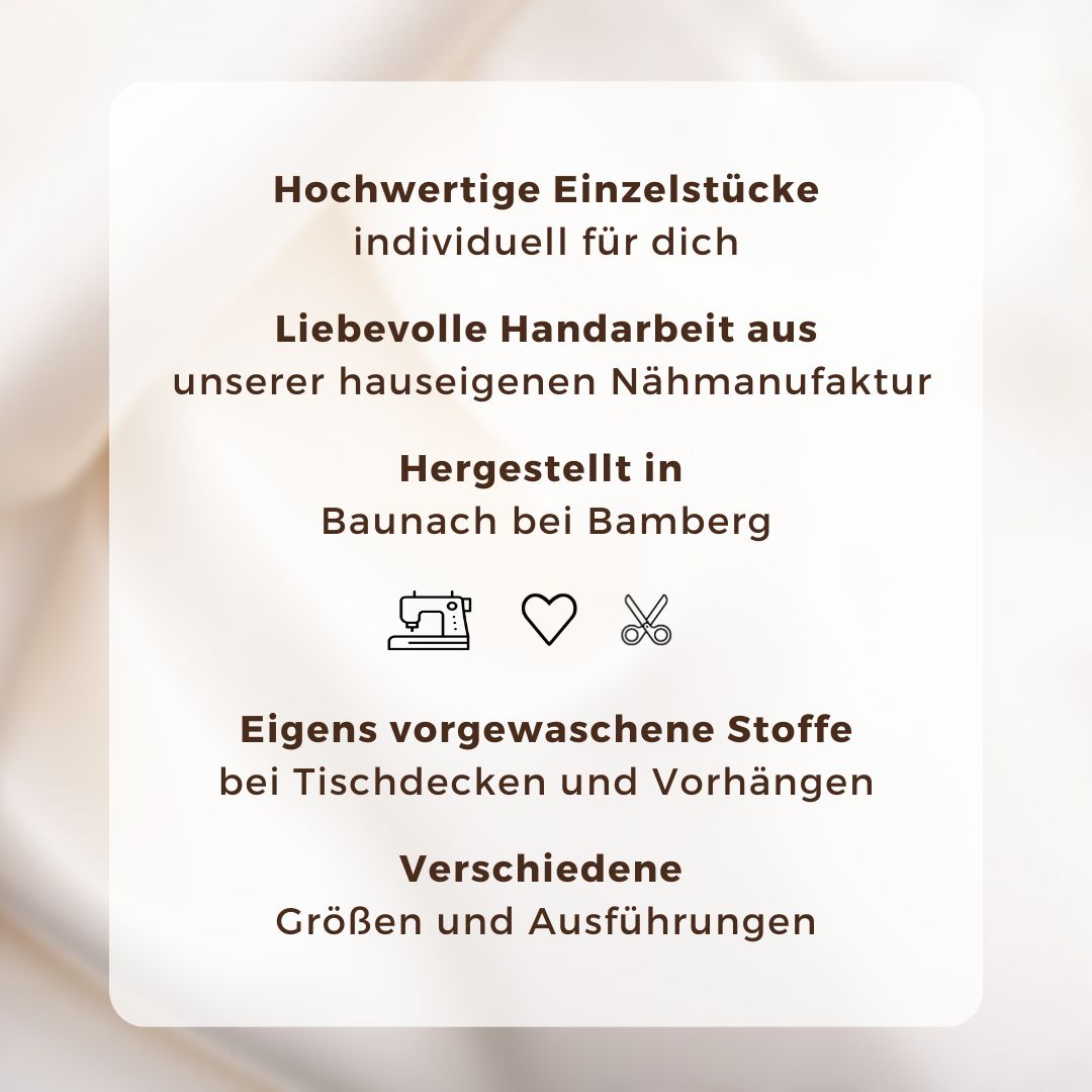 Hergestellt in Deutschland: In hauseigener Heimtextilien-Manufaktur in Deutschland in liebevoller Handarbeit hergestellt
