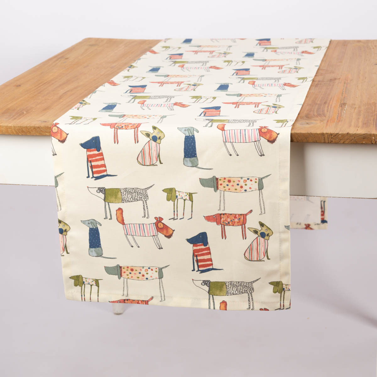 Tischläufer Baumwolle Hunde beige bunt 40x160cm von SCHÖNER LEBEN.