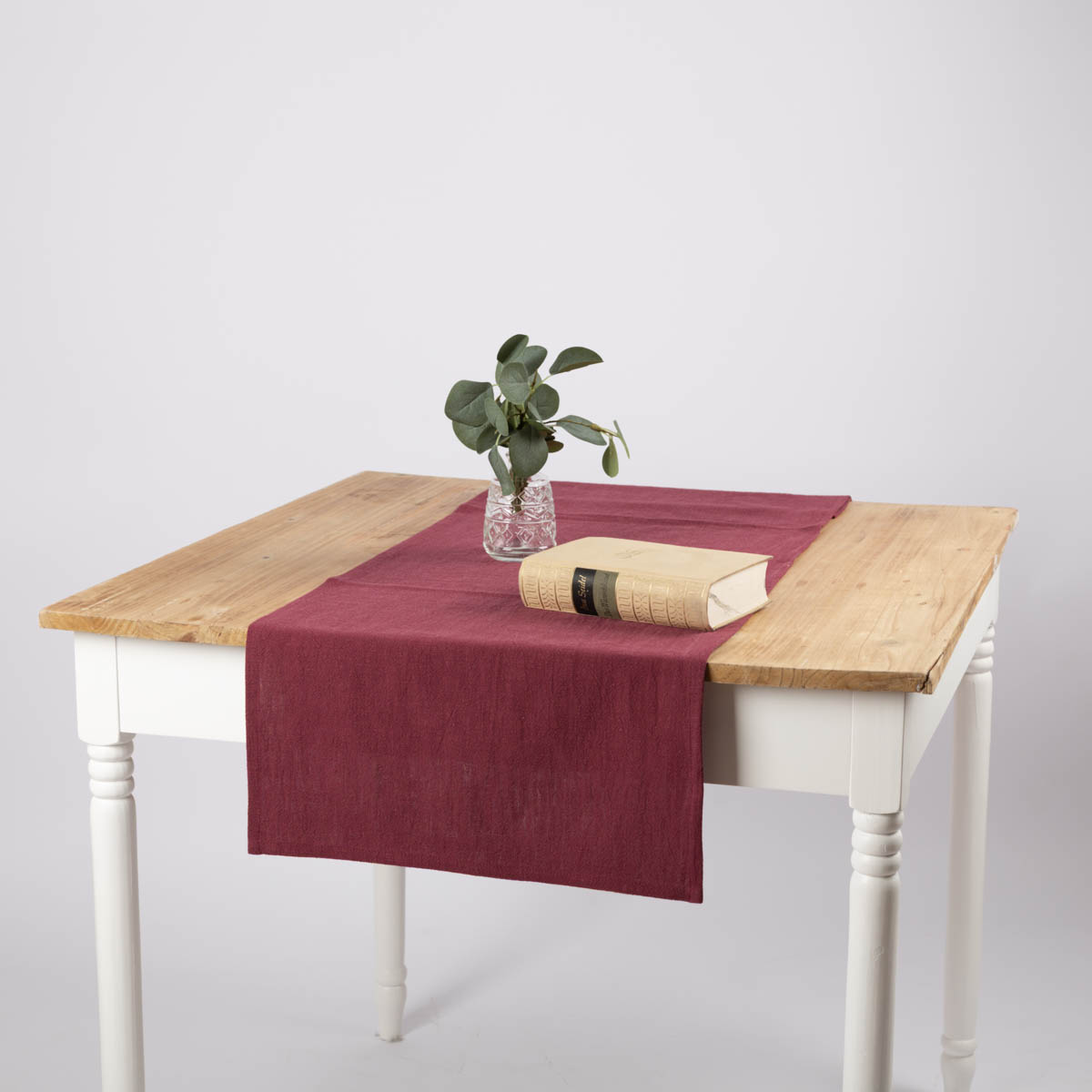 Tischläufer Leinen mit BW-Anteil einfarbig beere 40x160cm von SCHÖNER LEBEN.