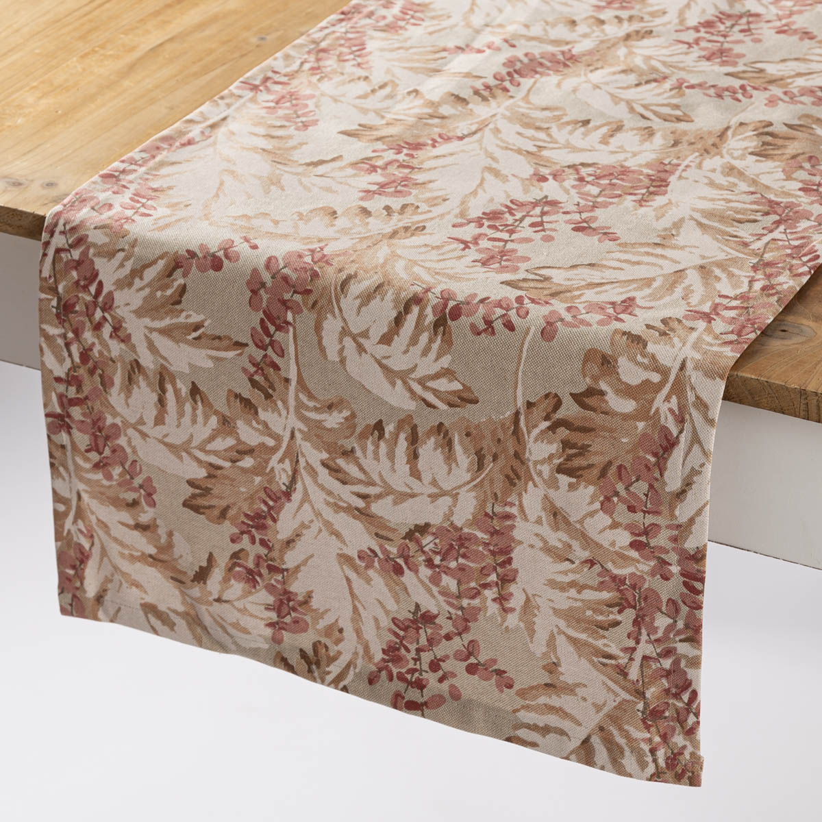 Der Tischläufer mit wunderschönem Pflanzenprint aus unserer SCHÖNER LEBEN. Kollektion ist perfekt für einzigartige Tischdekorationen mit verspieltem Charme. Die weißen Pampaswedel und roten Eukalyptusblätter kommen aus dem naturfarbigen Halbpanama-Gewebe in natürlicher Leinenoptik besonders schön zur Geltun.