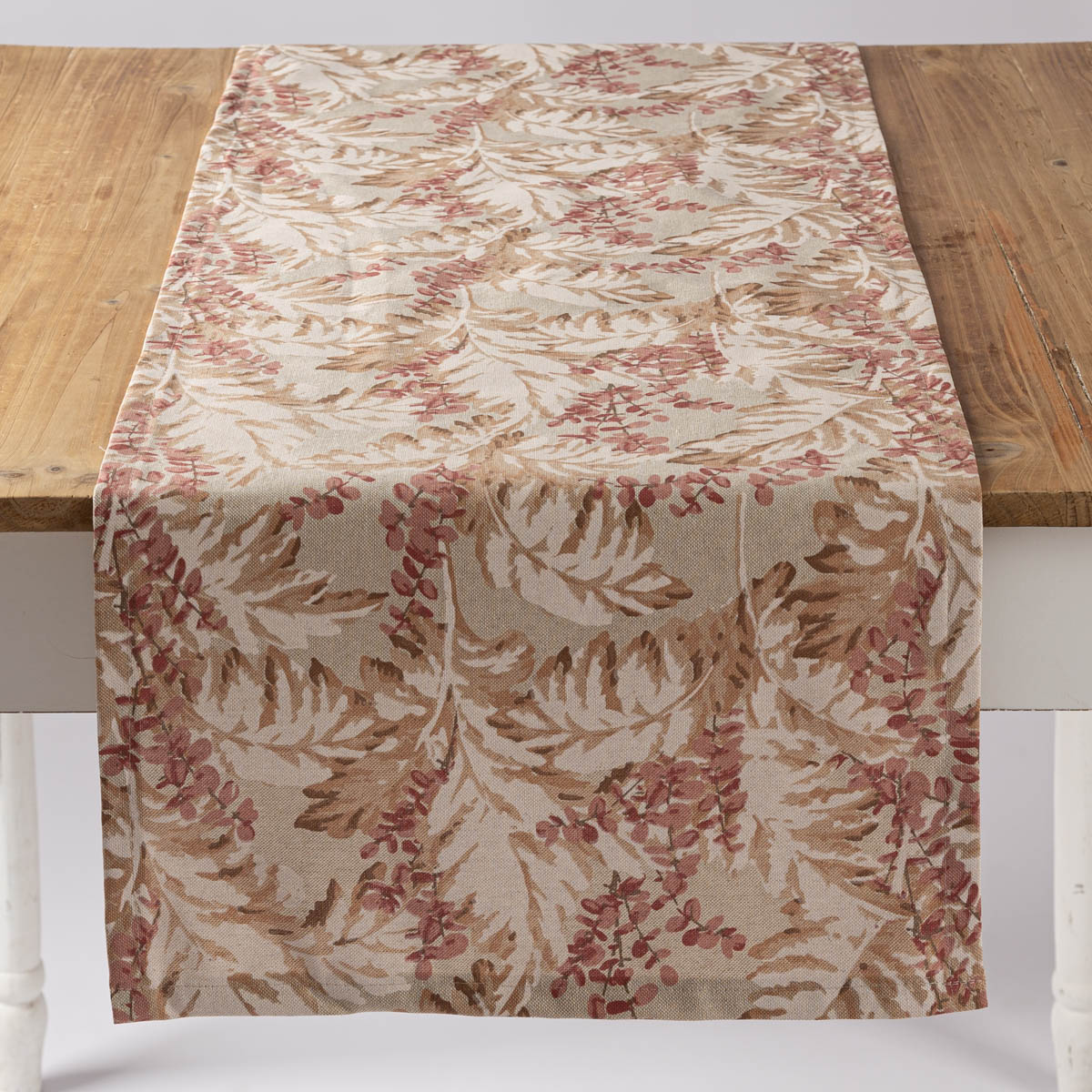 Tischläufer Leinenlook Pampasgras Eukalyptus natur rot 40x160cm von SCHÖNER LEBEN.