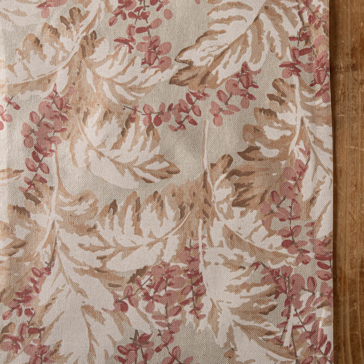 Der Tischläufer mit 80% Baumwollanteil hat einen natürlichen Charakter und passt zu vielen Wohnstilen wie Boho oder Romantik. Selbstverständlich bekommst du bei uns auch die passende Baumwollstoff-Meterware in Halbpanama-Qualität mit Pampasgras und Eukalyptus in140cm Stoffbreite.