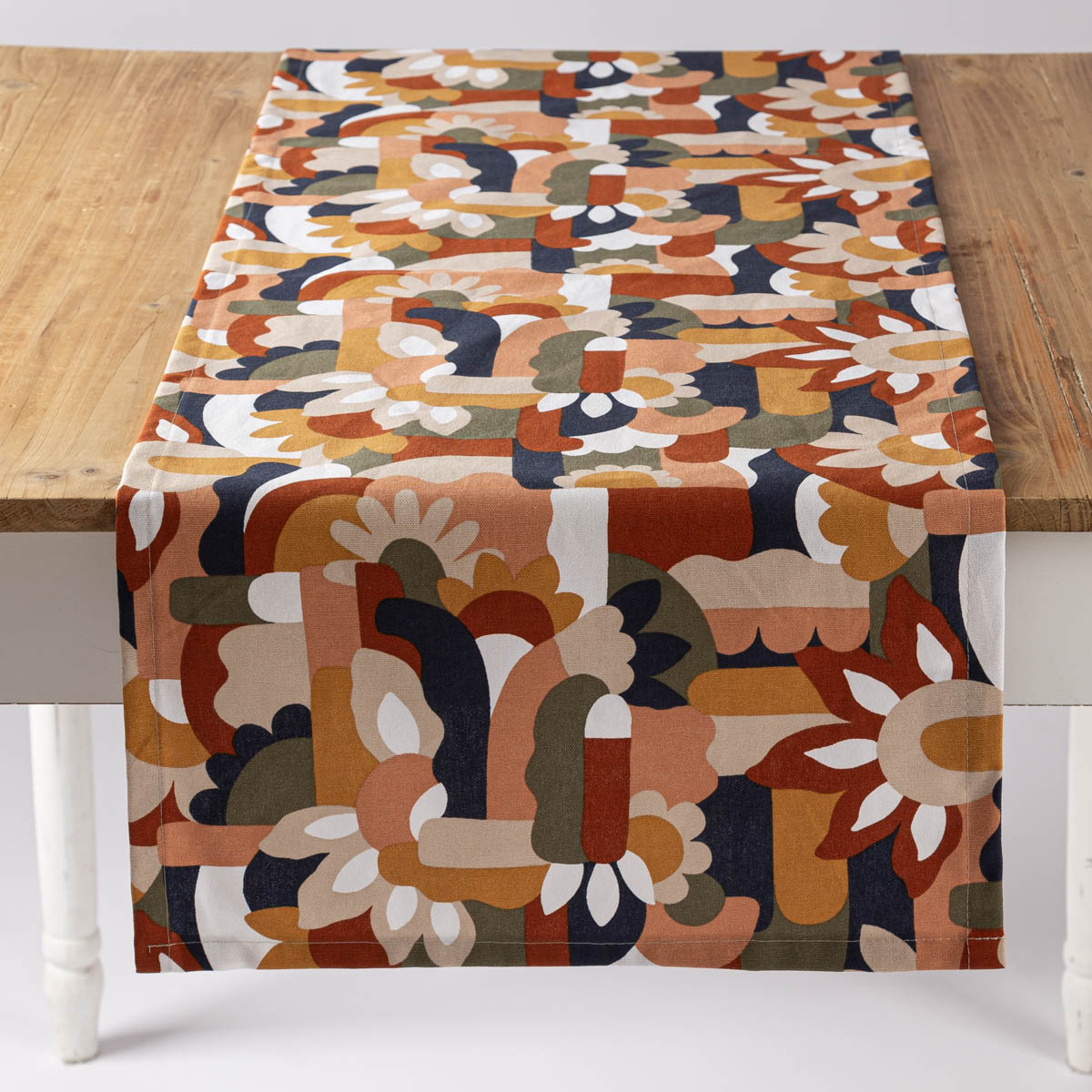 Retro Dessin: Der Tischläufer mit kräftigen warmen Farben und organischen Formen im Retro-Stil aus unserer Schöner Leben. Kollektion ist ein Hingucker auf deinem Tisch.