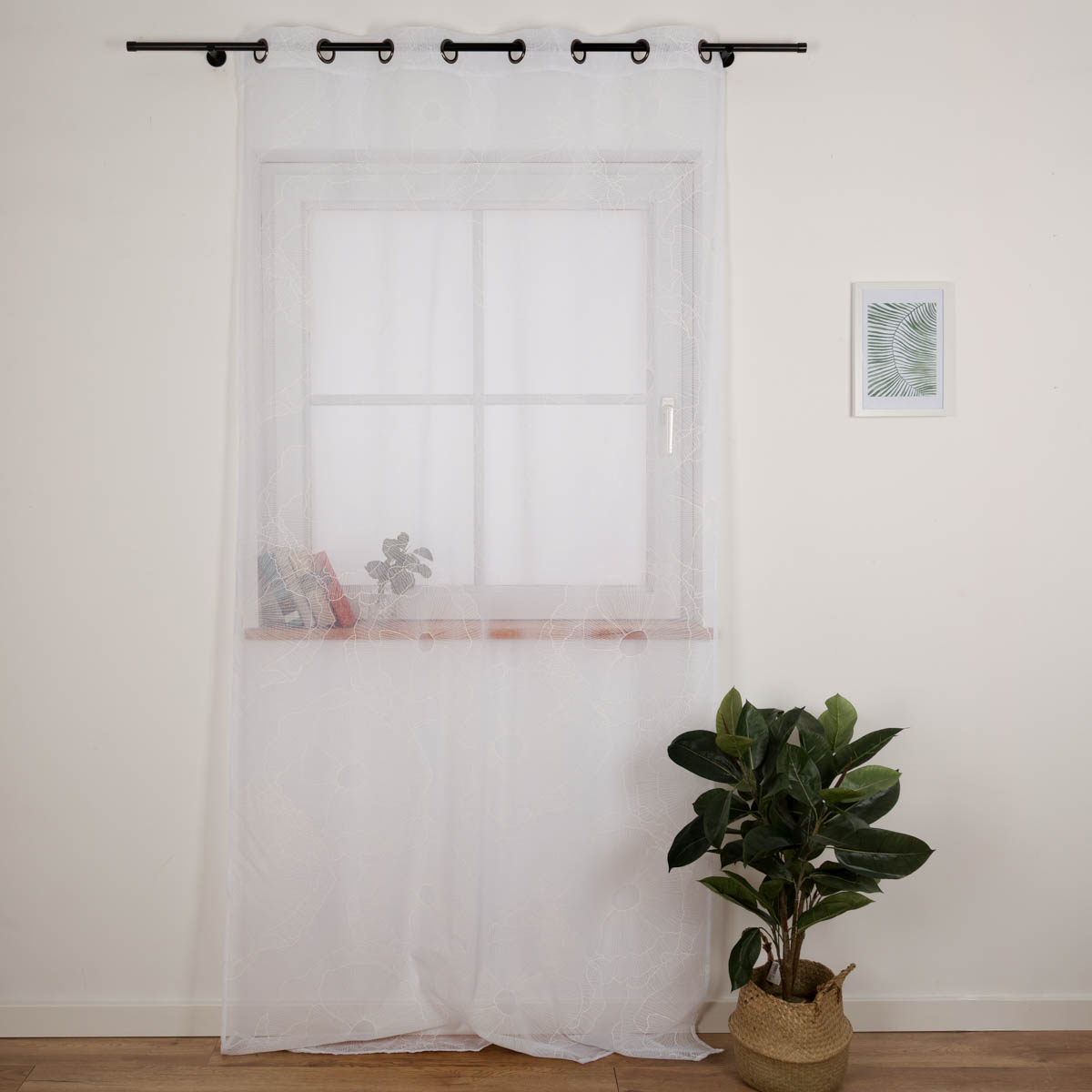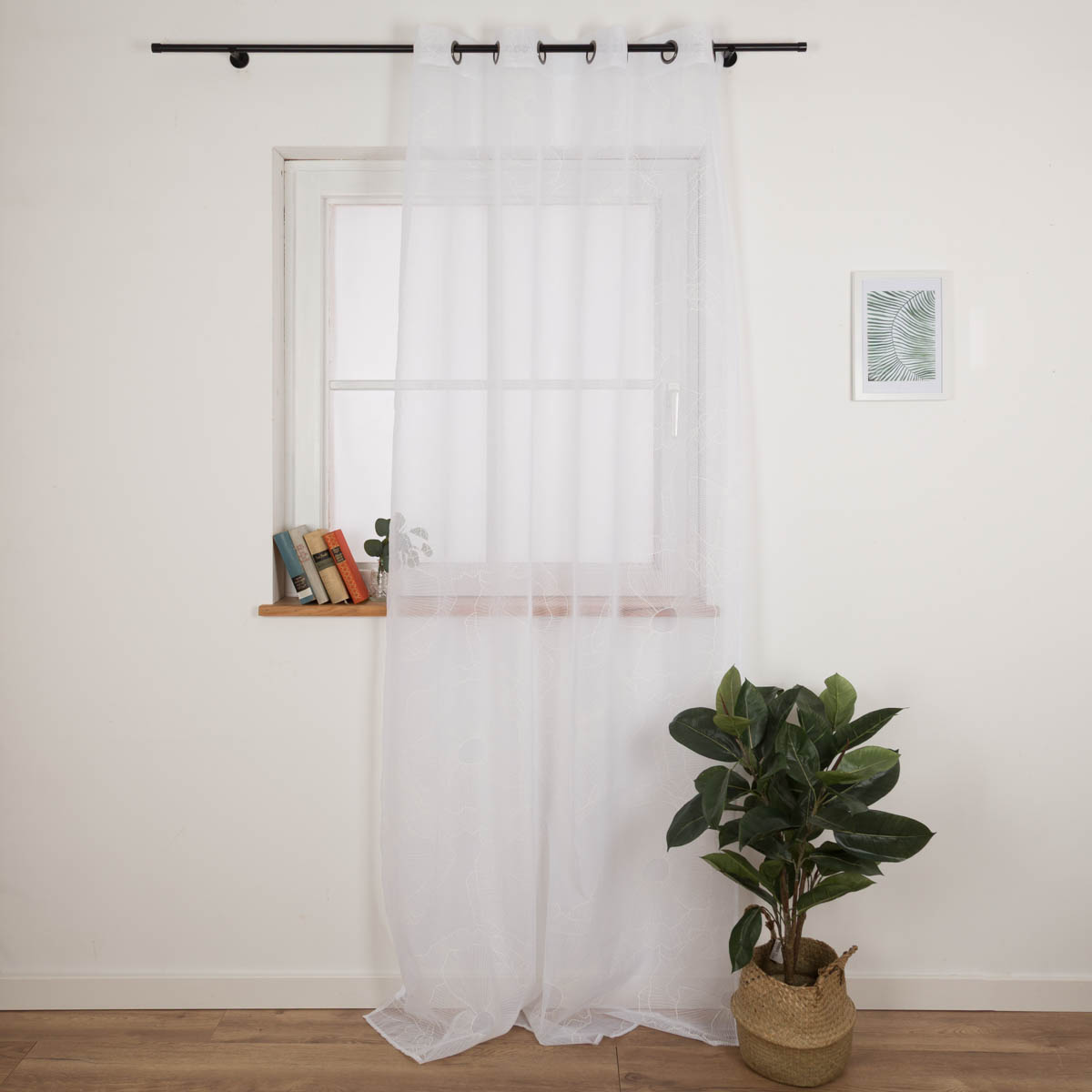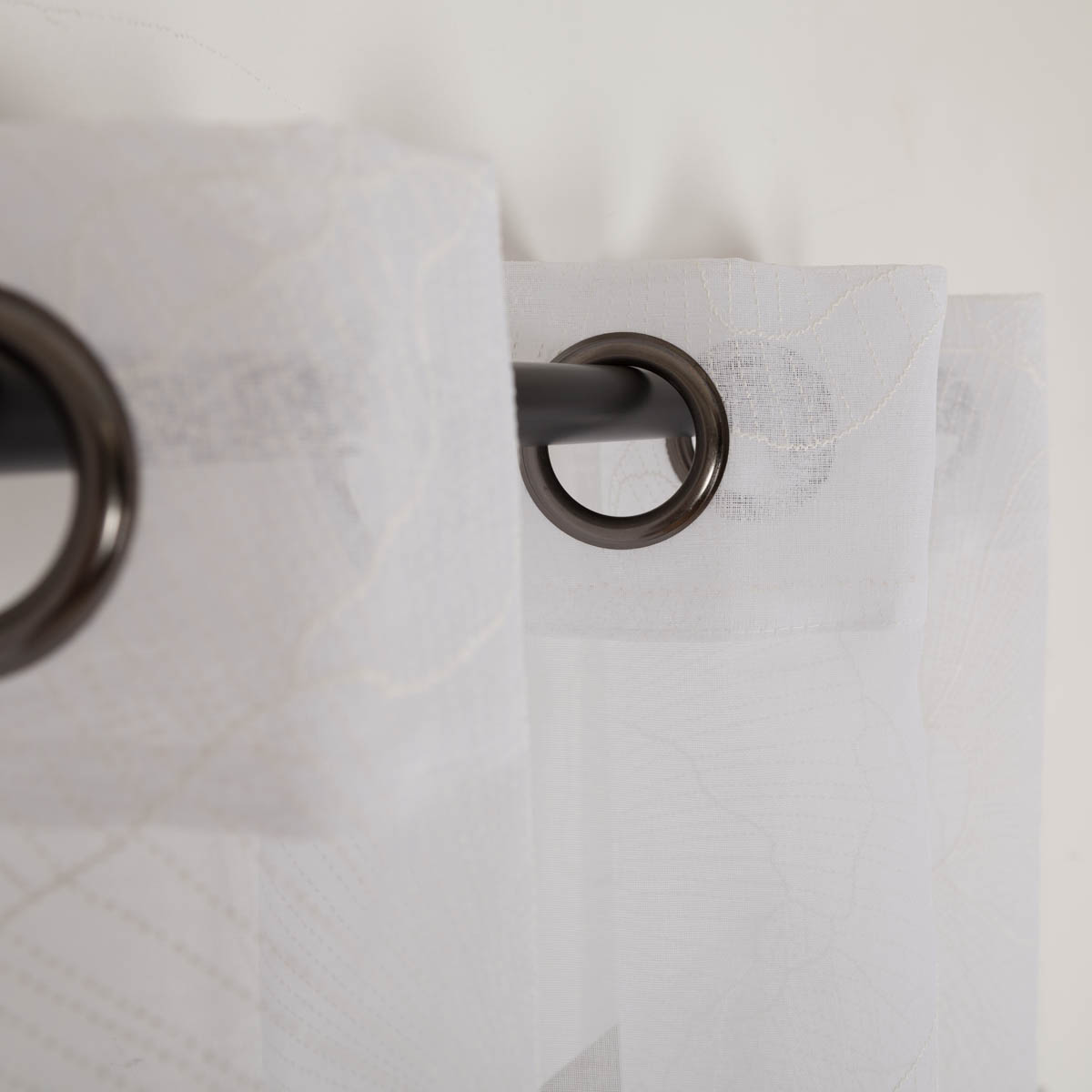 Wunderschöner transparenter Ösenvorhang mit abstrakten Blüten im 3D Print in Weiß 140x260cm