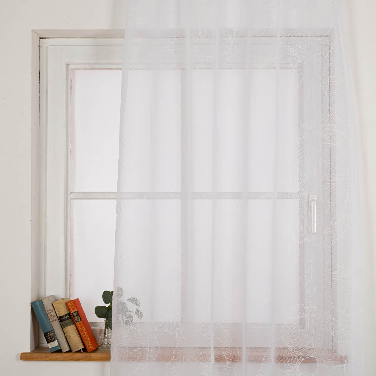 Der transparente Ösenvorhang mit großen 3D Blumen aus Frankreich ist ein Schmuckstück für deine Fenster! Die Gardine aus transparentem Voile in frischem Weiß fällt leicht und duftig und sorgt tagsüber für Sicht- und Blendschutz ohne das Tageslicht zu schlucken. Das Blumendessin ist mit 3D Strukturprint auf das Gewebe aufgebracht.