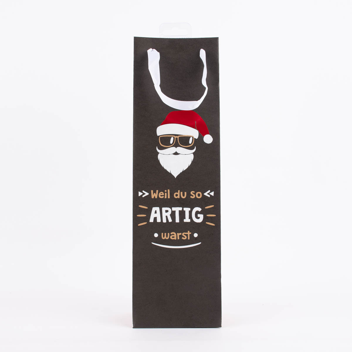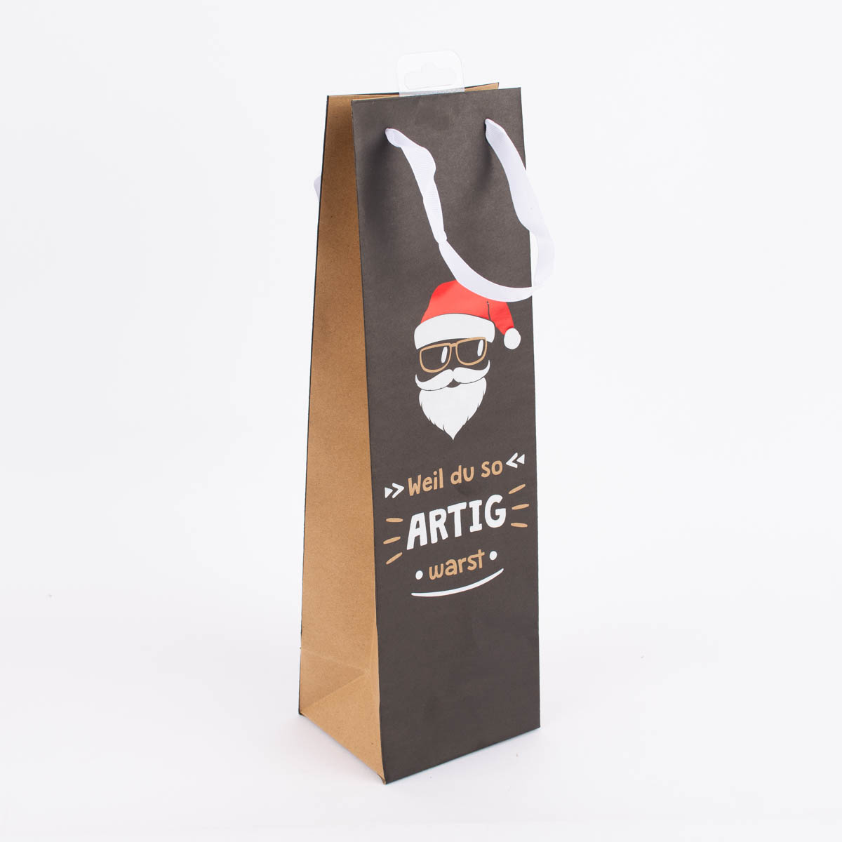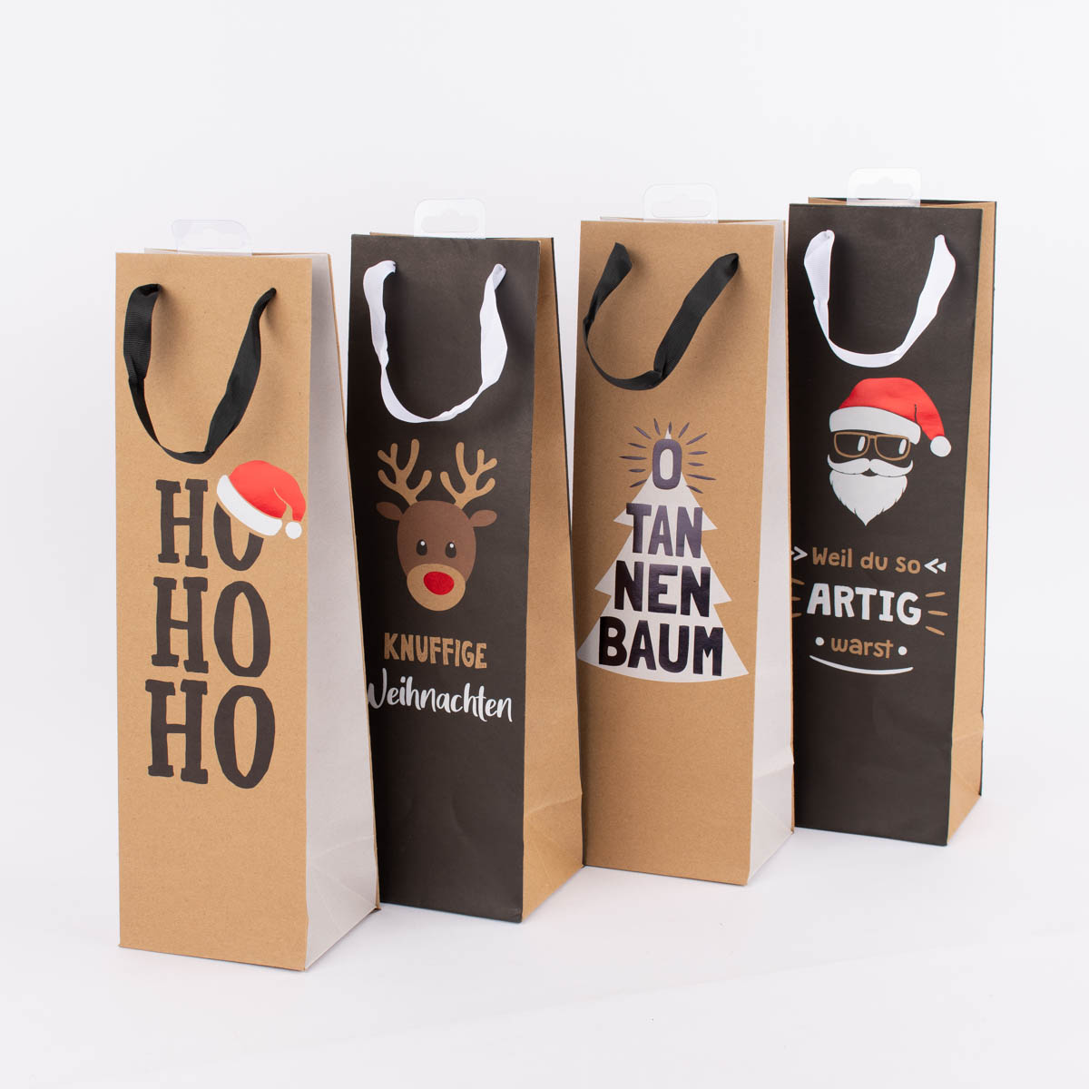 Geschenktasche Flaschentasche Coole Weihnachten natur schwarz 12x40x10cm verschiedene Motive