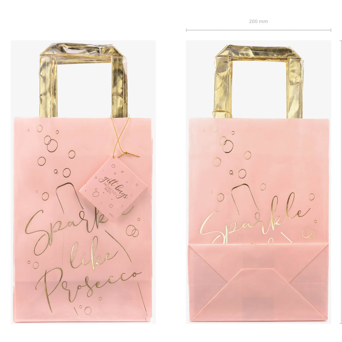 Geschenktüten Sparkle like Prosecco 6er Set rosa goldfarbig 26x18x10cm