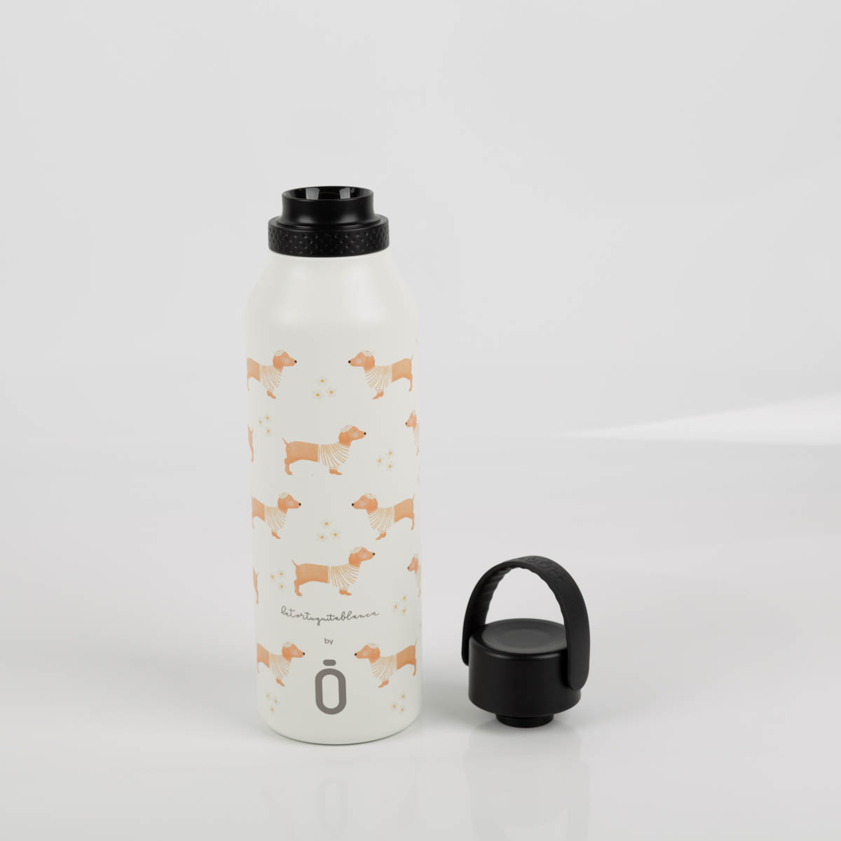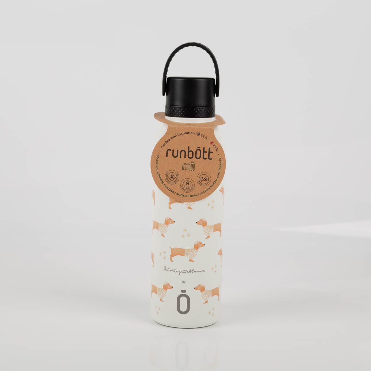Trinkflasche La Tortuguita Blanca Daisy Teckel von Runbott – Kunst trifft Funktionalität