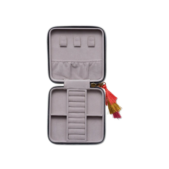 Dank seines kompakten Formats passt das Schmuckkästchen problemlos in Handtasche oder Koffer und sorgt dafür, dass deine Lieblingsstücke jederzeit sicher und übersichtlich verstaut sind.