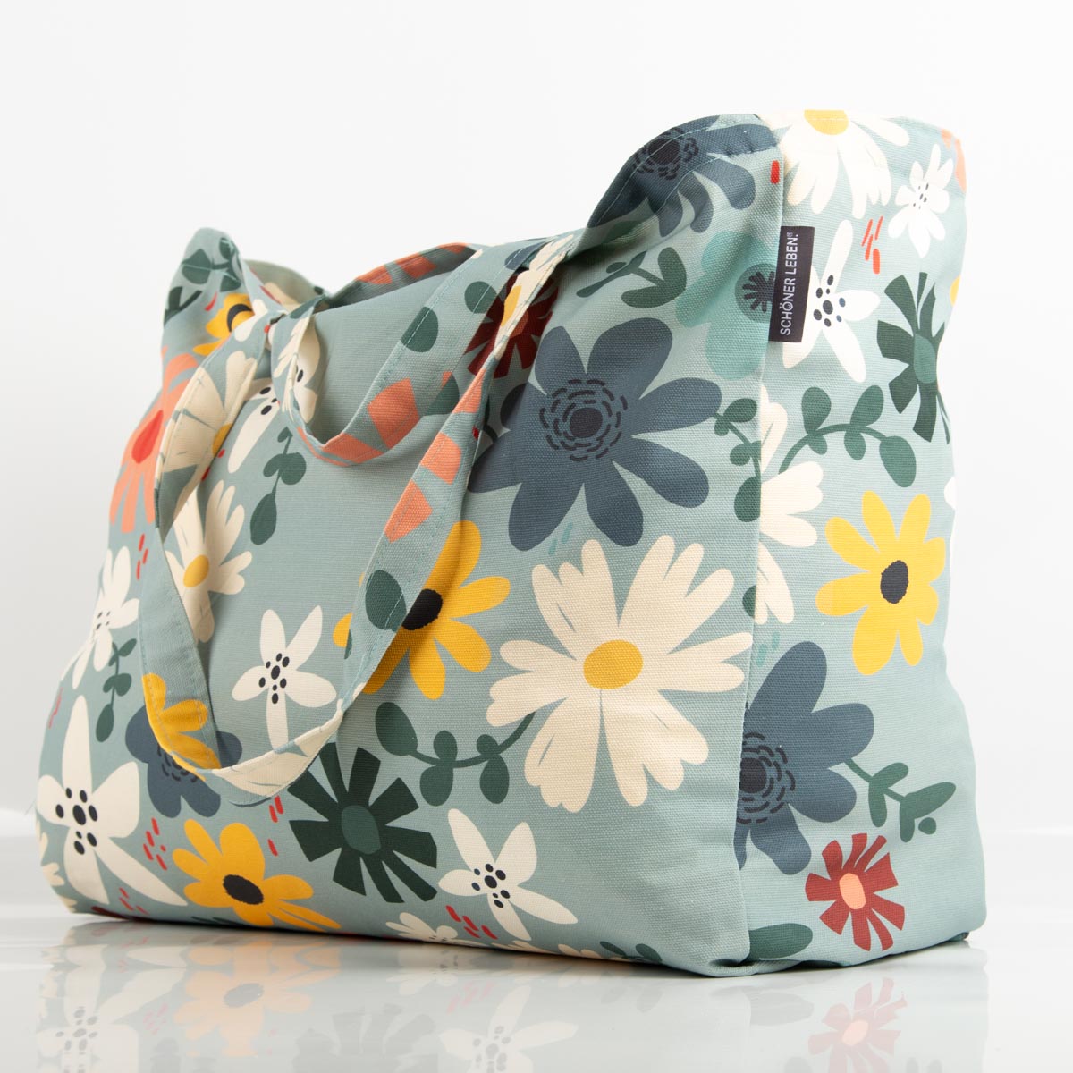 Tasche Shopper aus Baumwolle Blüten mint von SCHÖNER LEBEN.