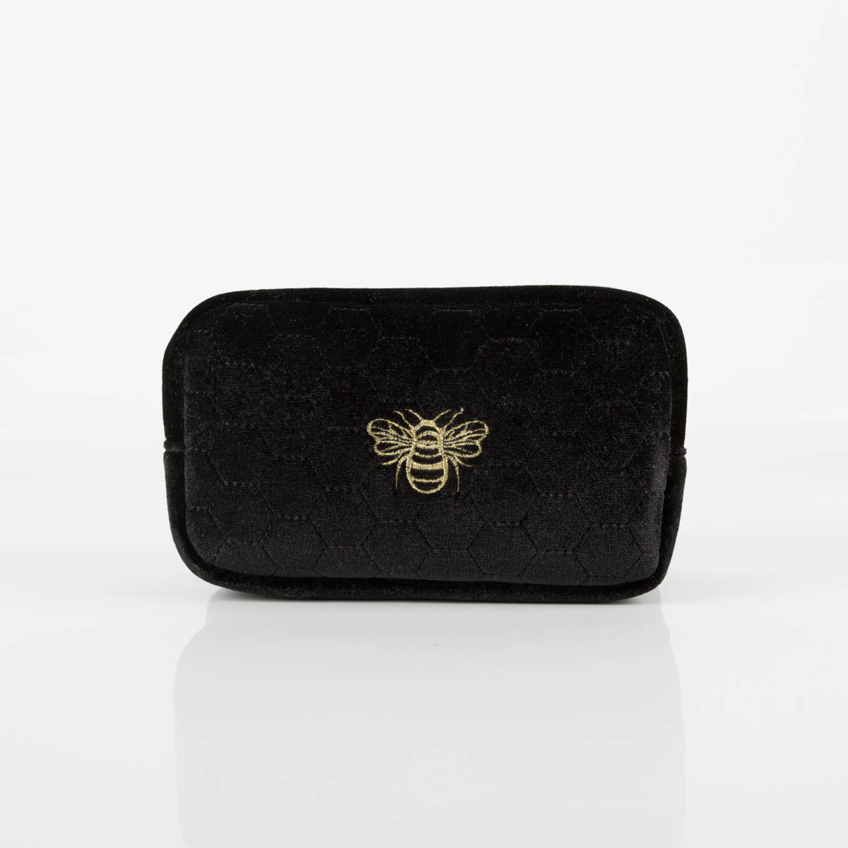 Bezaubernde Bee Makeup Bag von Sass & Belle in Schwarz und Gold in der Größe 9x18x13cm (BxLxH)