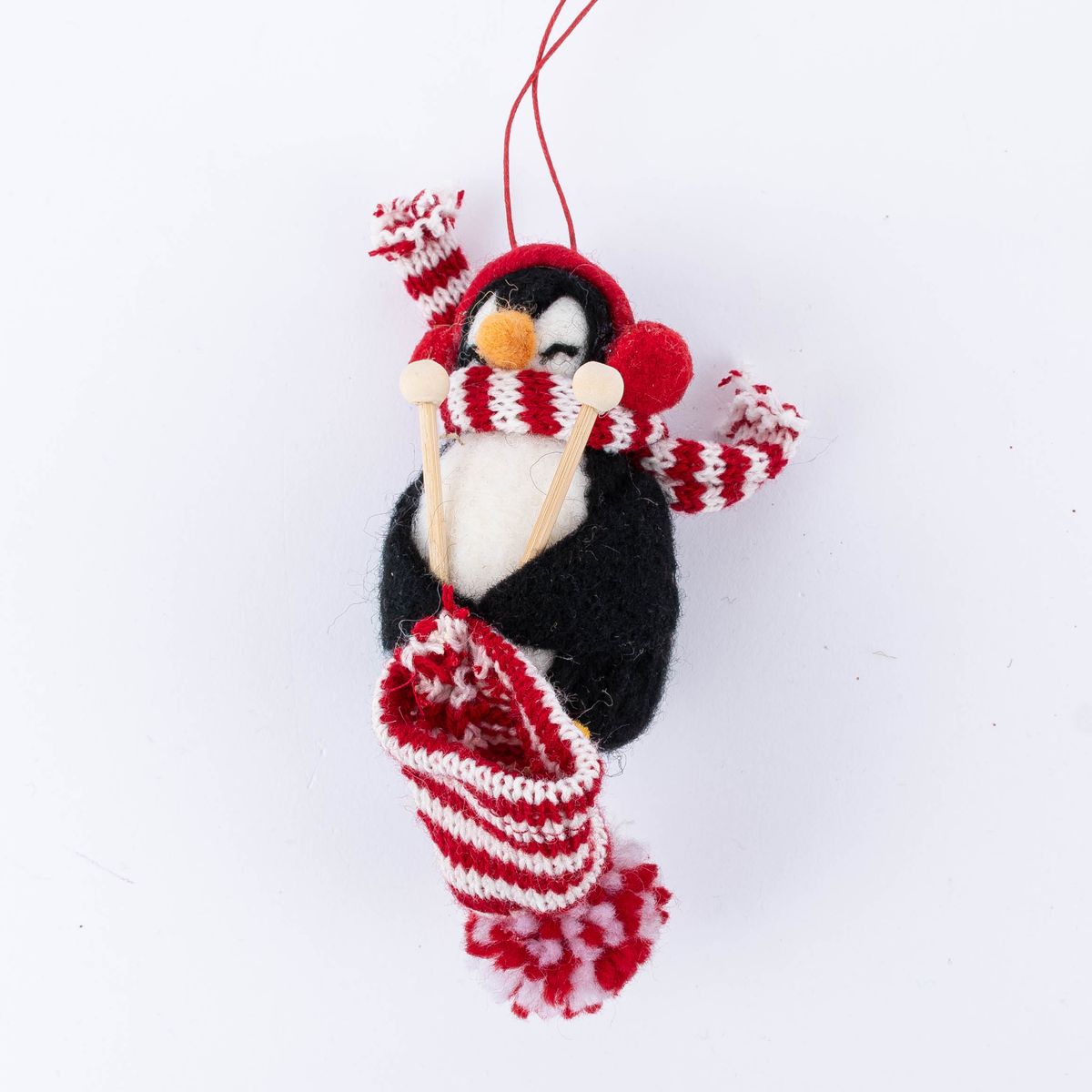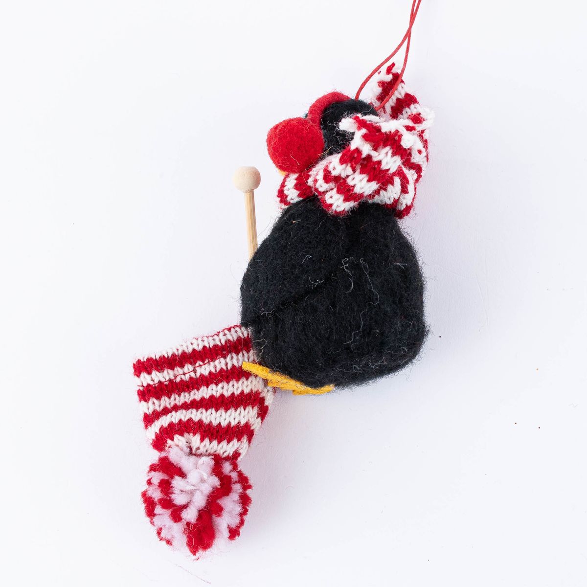 Sass & Belle Dekohänger strickender Pinguin Filz Wolle schwarz weiß rot 11x6x6cm