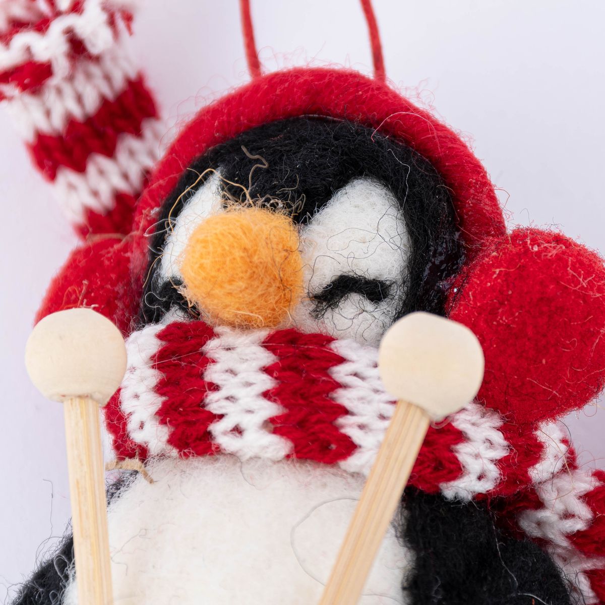 Süßer Anhänger aus Filz: strickender Pinguin von Sass & Belle