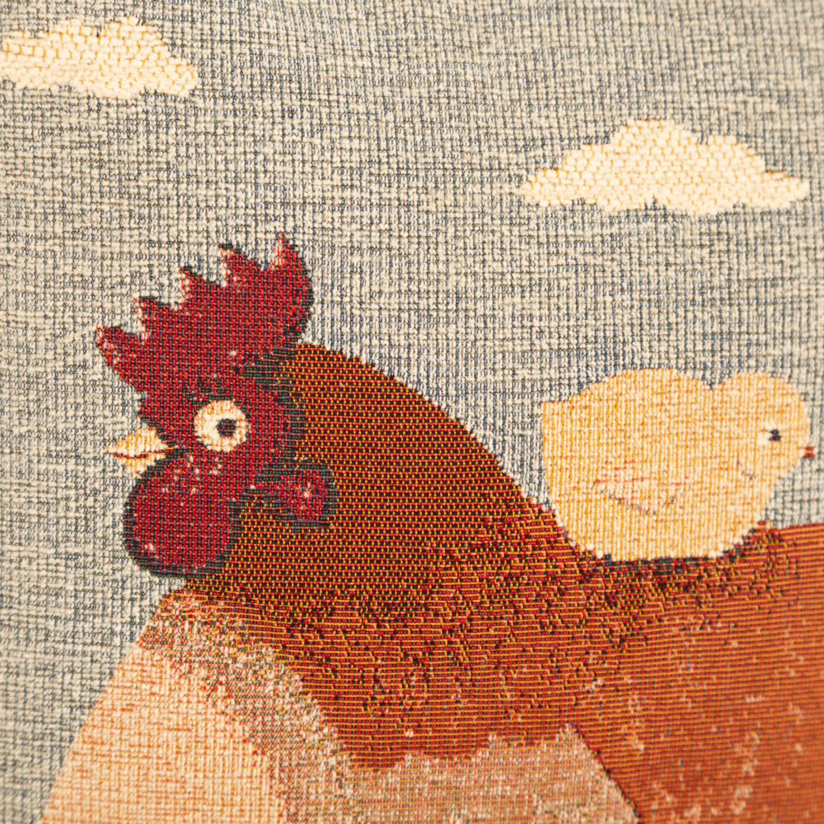 Eingewebtes Motiv: hochwertige Gobelin Kissenhülle „Henne mit Küken“ in Beige, strukturierte Optik statt Druck