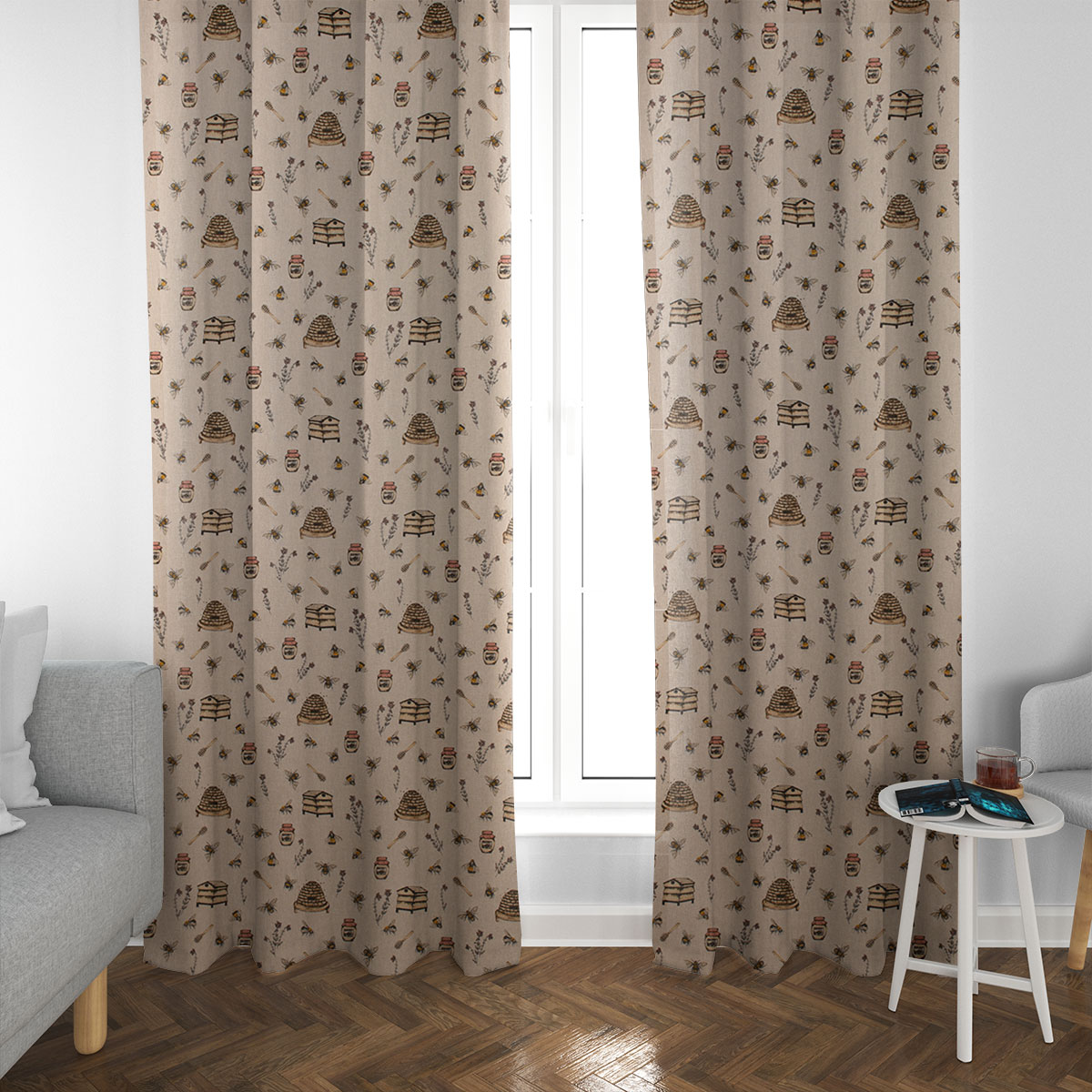 SCHÖNER LEBEN. Vorhang Leinenlook Bee Honey Buzzing Honig Bienen Korb natur gelb 245cm oder Wunschlänge