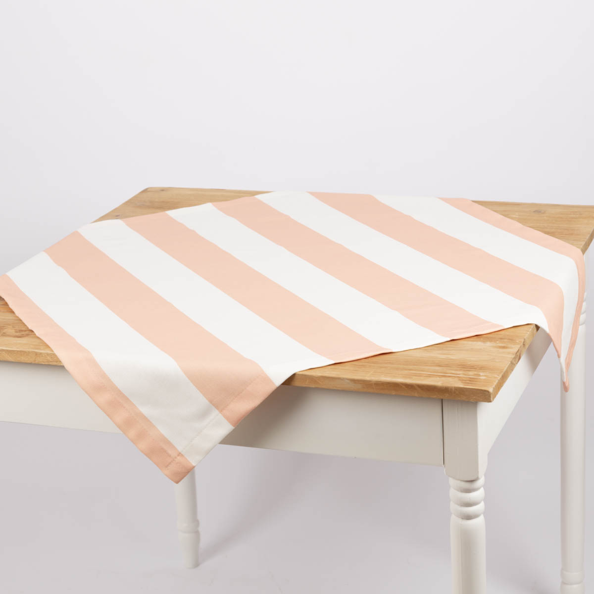 Tischdecke aus Baumwolle mit Streifen in Peach und Ecru – handgefertigt für dein Zuhause