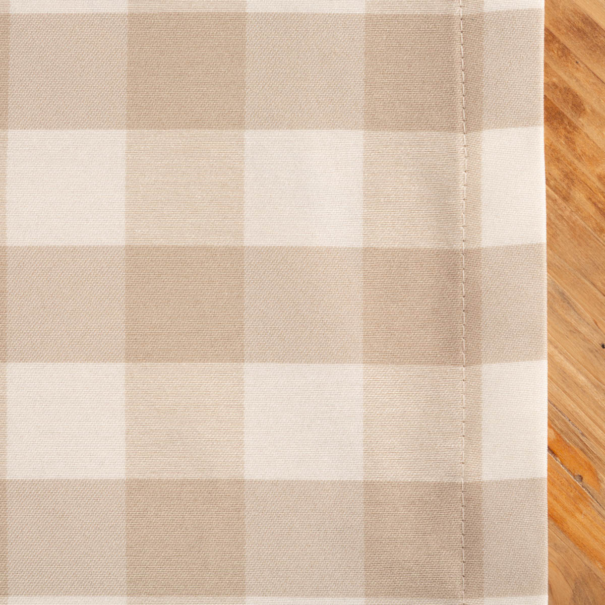 Die Tischdecke mit klassischen Karos in Beige und Weiß ist in einer Vielzahl an Standardgrößen für Mitteldecken, Tischdecken und Biertischgarnituren erhältlich, so dass jeder Tisch das passende Kleid erhält. Egal ob für den kleinen Küchentisch, den ausladenden Esstisch oder die lange Tafel, es gibt stets die richtige Größe. Standardmäßig versehen wir alle unsere Tischdecken mit einem ca. 2 cm breiten Saum. Dieser bildet einen ebenmäßigen Abschluss und lässt die Tischdecke schön fallen.