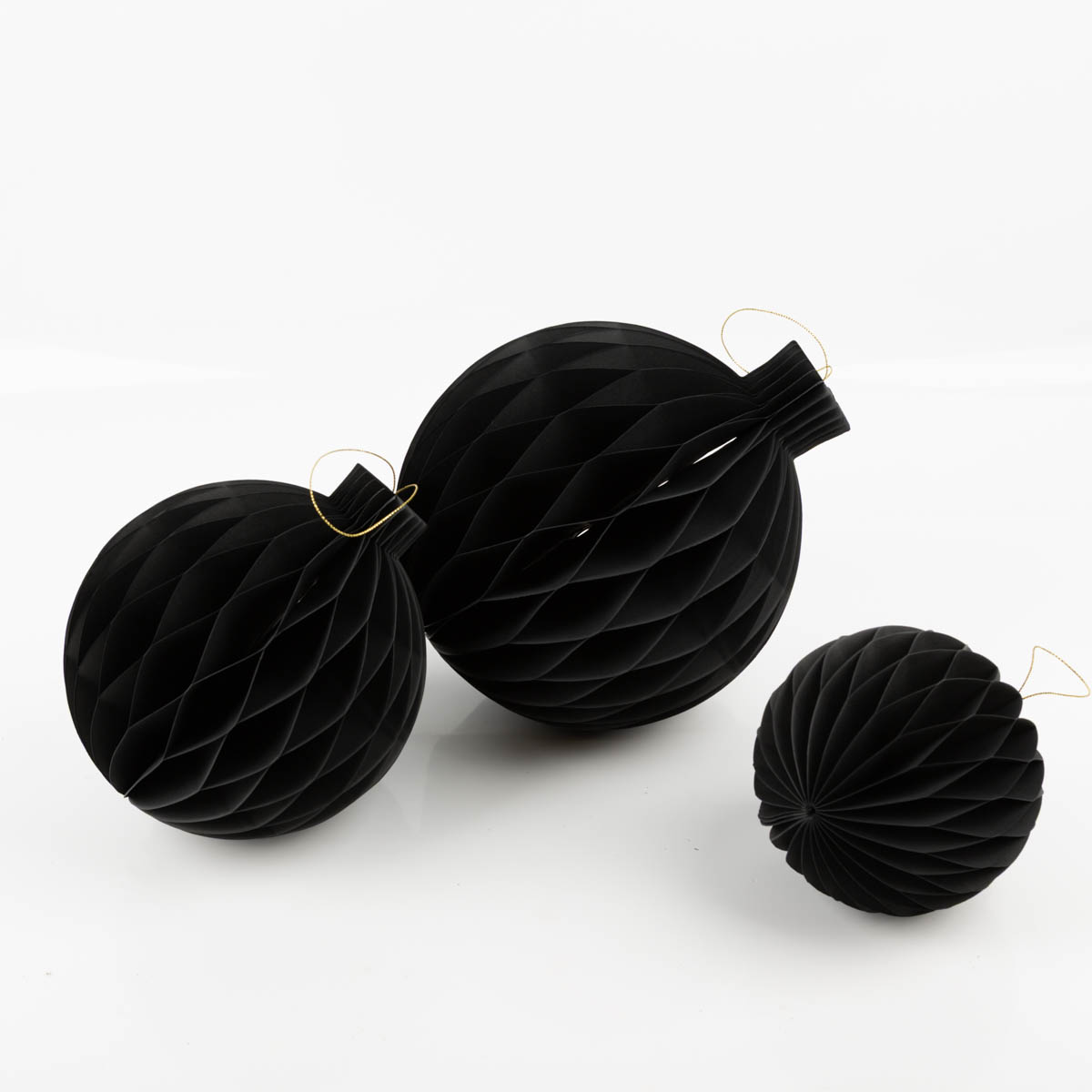 Nachhaltige Honeycomb Weihnachtskugel aus Papier – schwarz & elegant