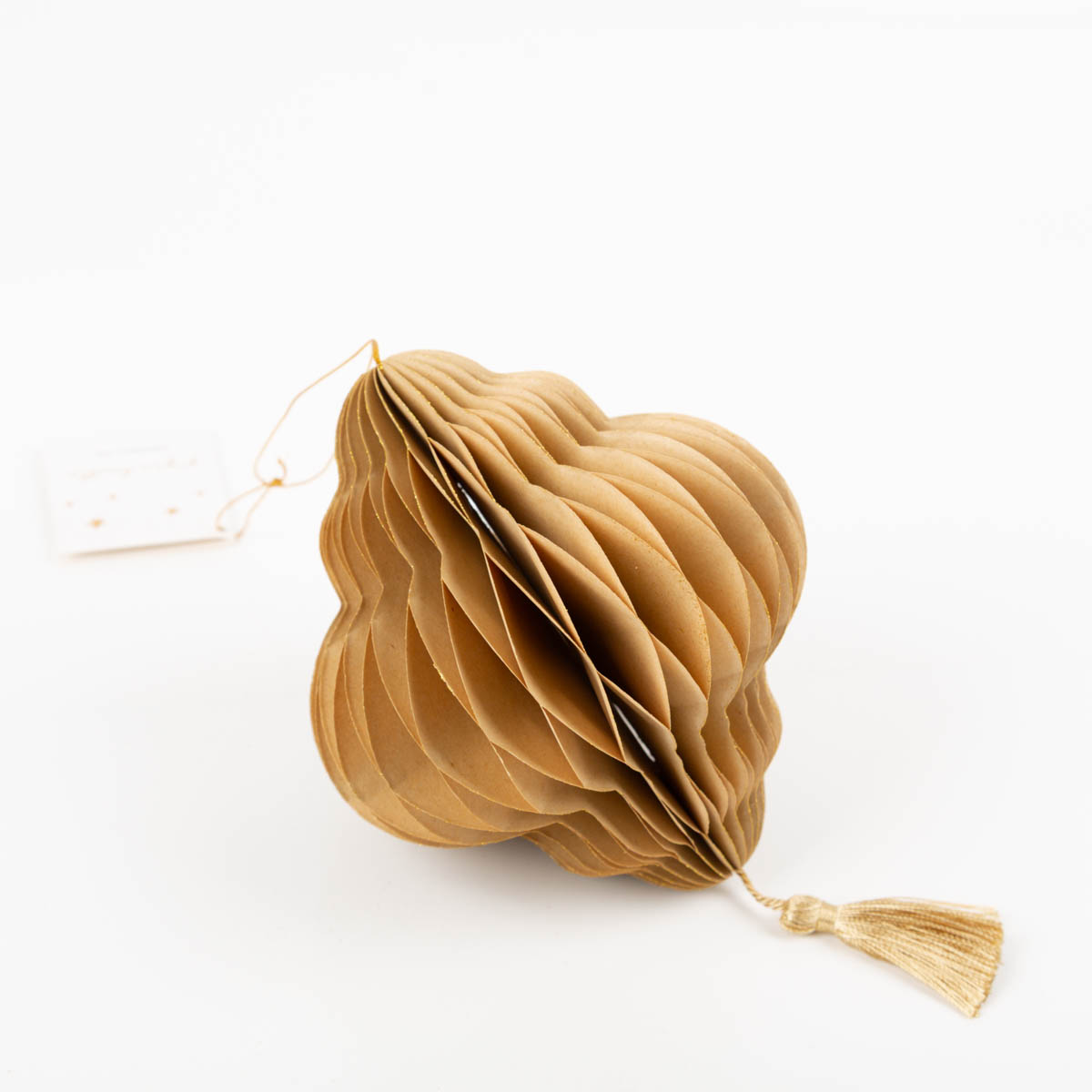 Dieser Weihnachtshänger in Honeycomb-Optik bringt festlichen Glanz in dein Zuhause. Der Papieranhänger in elegantem Beige mit feinem Goldrand sorgt für eine edle und warme Atmosphäre.