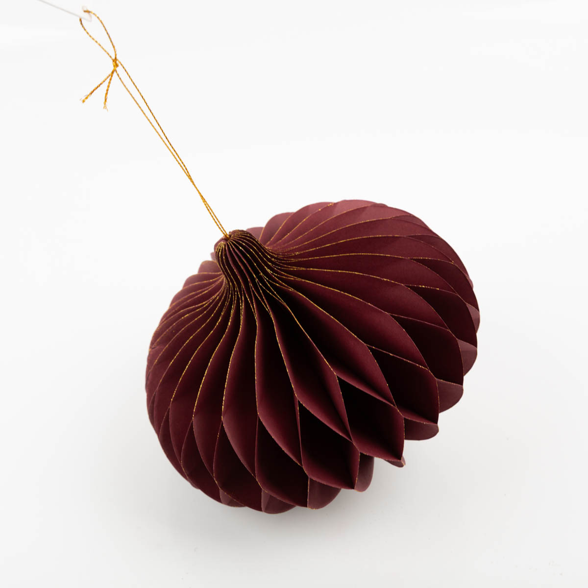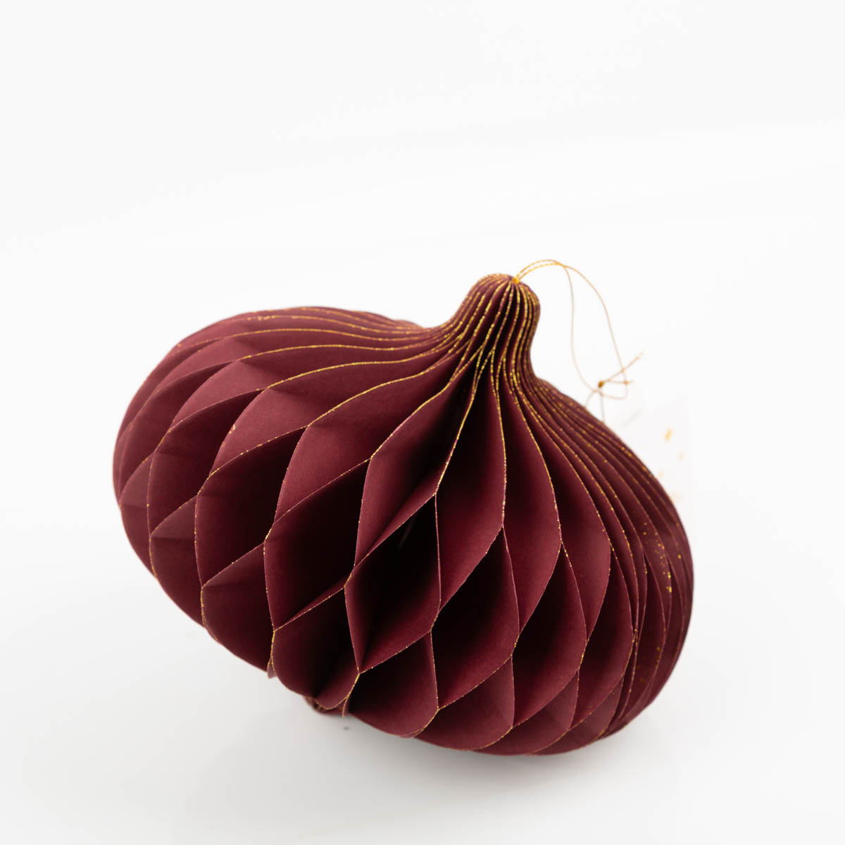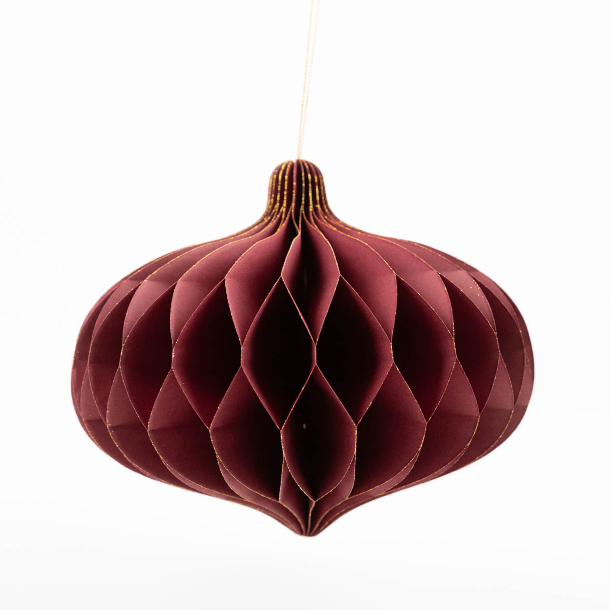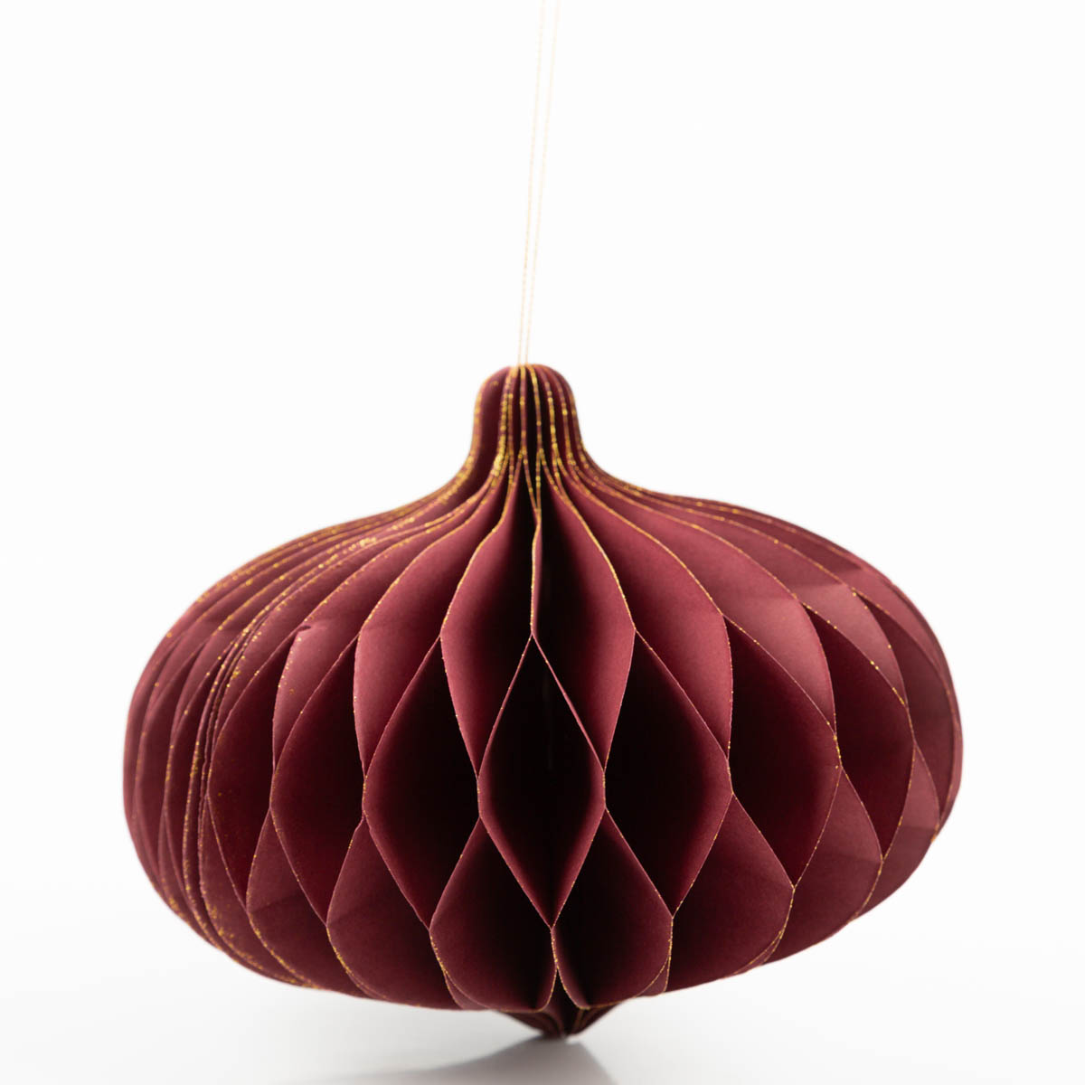 Dieser Weihnachtshänger in Honeycomb-Optik bringt festlichen Glanz in dein Zuhause. Der Papieranhänger in elegantem Weinrot mit feinem Goldrand sorgt für eine edle und warme Atmosphäre.