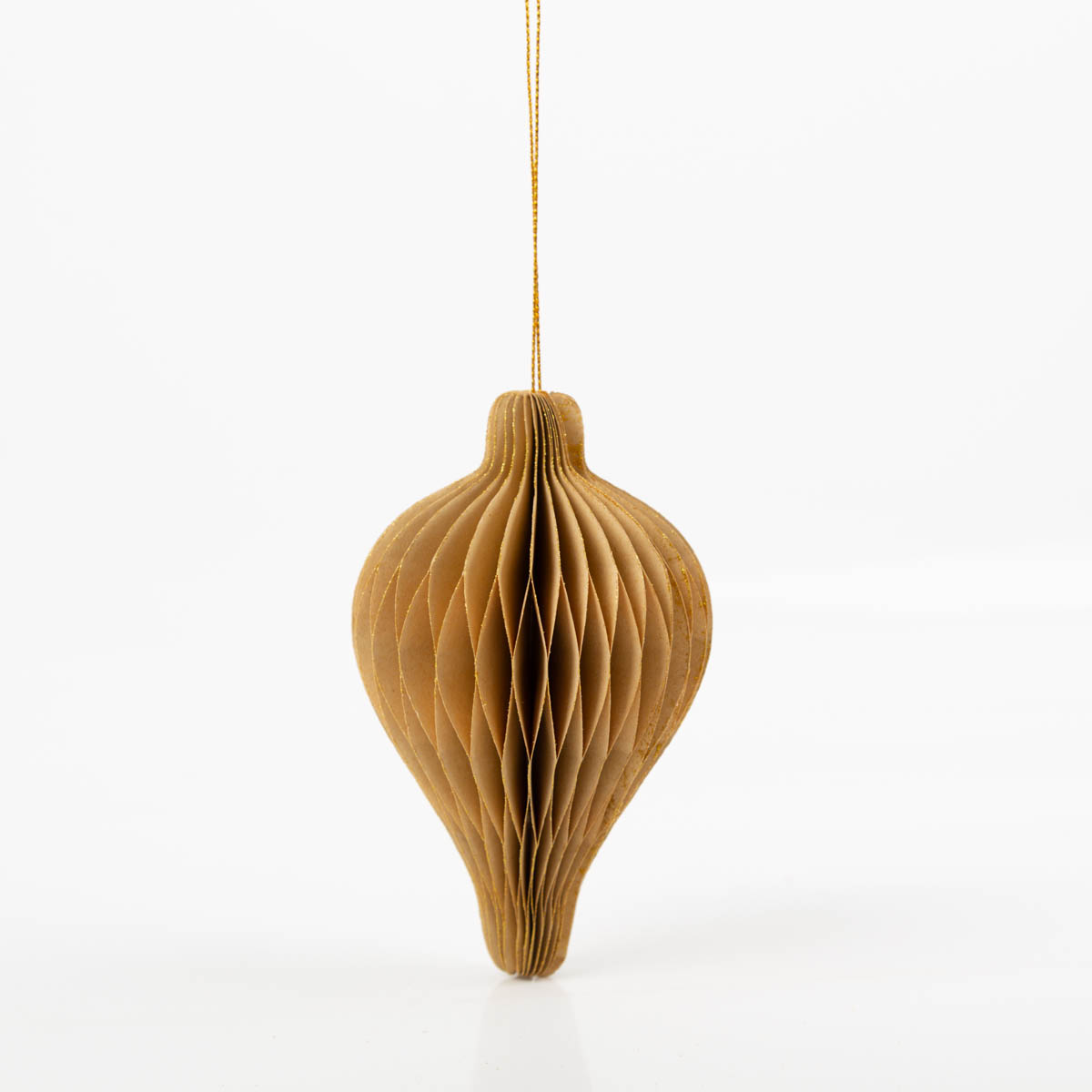Weihnachtshänger Honeycomb Tropfen beige mit Goldrand, 8x12cm