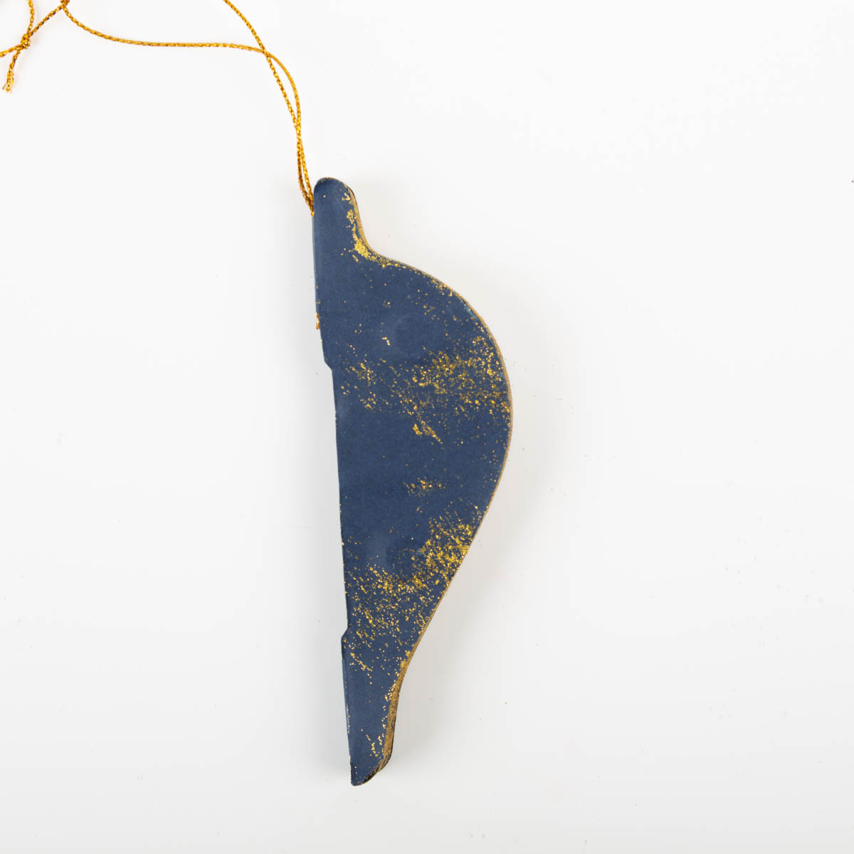 Weihnachtshänger Honeycomb Topfen marineblau mit Goldrand, 8x12cm