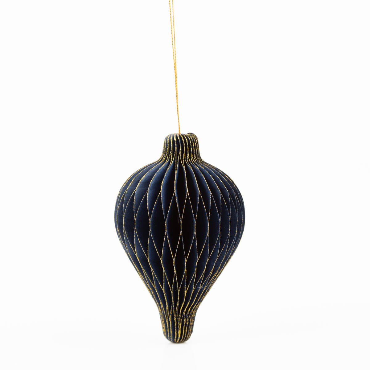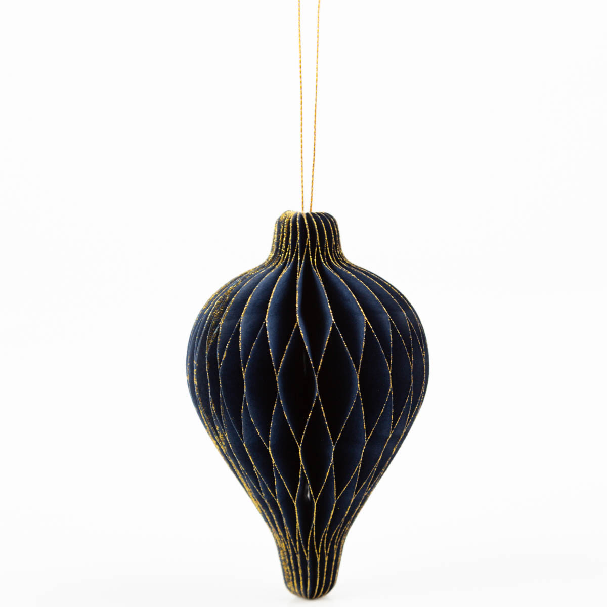 Weihnachtshänger Honeycomb Tropfen marineblau mit Goldrand, 8x12cm