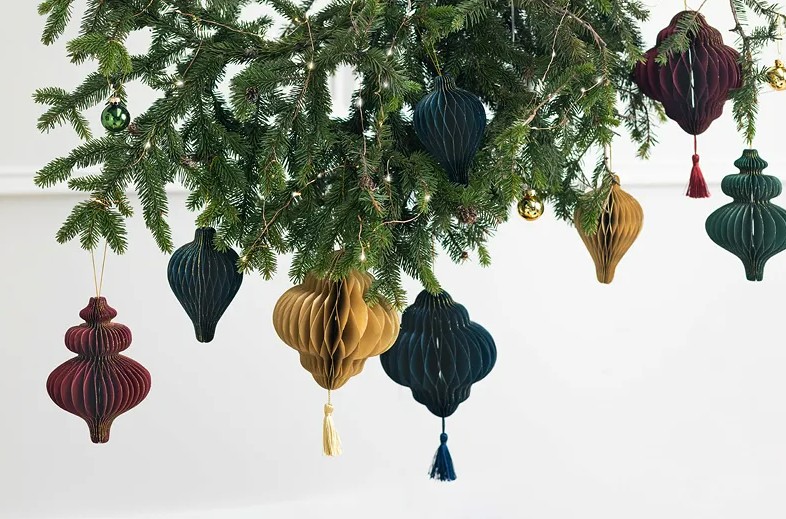 • Dekorativer Weihnachtshänger aus Papier in Honeycomb-Optik