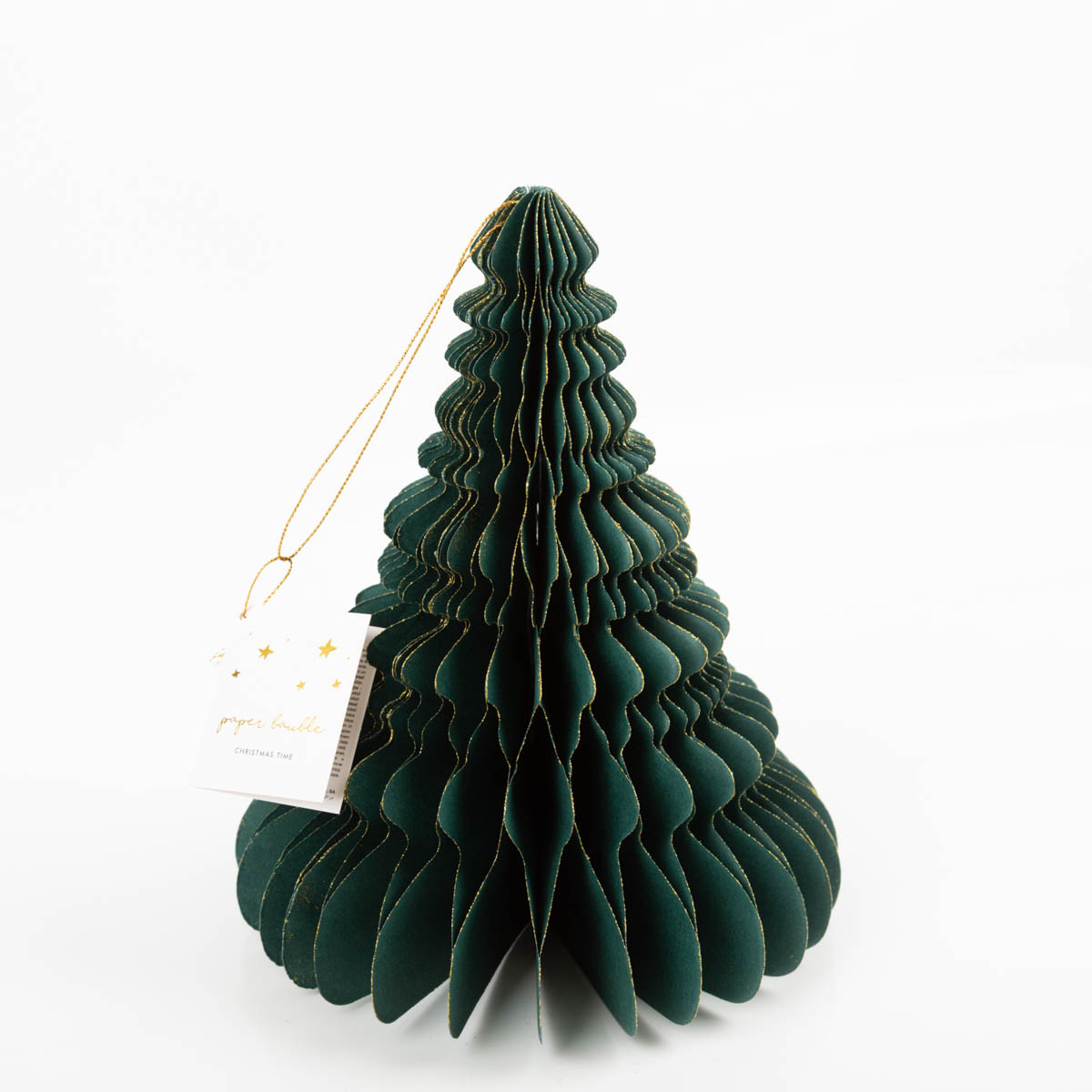 Weihnachtshänger Honeycomb Weihnachtsbaum, flaschengrün mit Goldrand, 20x24cm