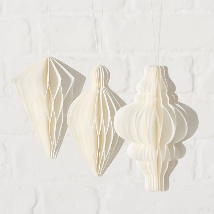 Weihnachtshänger Honeycomb weiß im 3er Set 10x7 cm (H x D) recyceltes Papier von Boltze Home